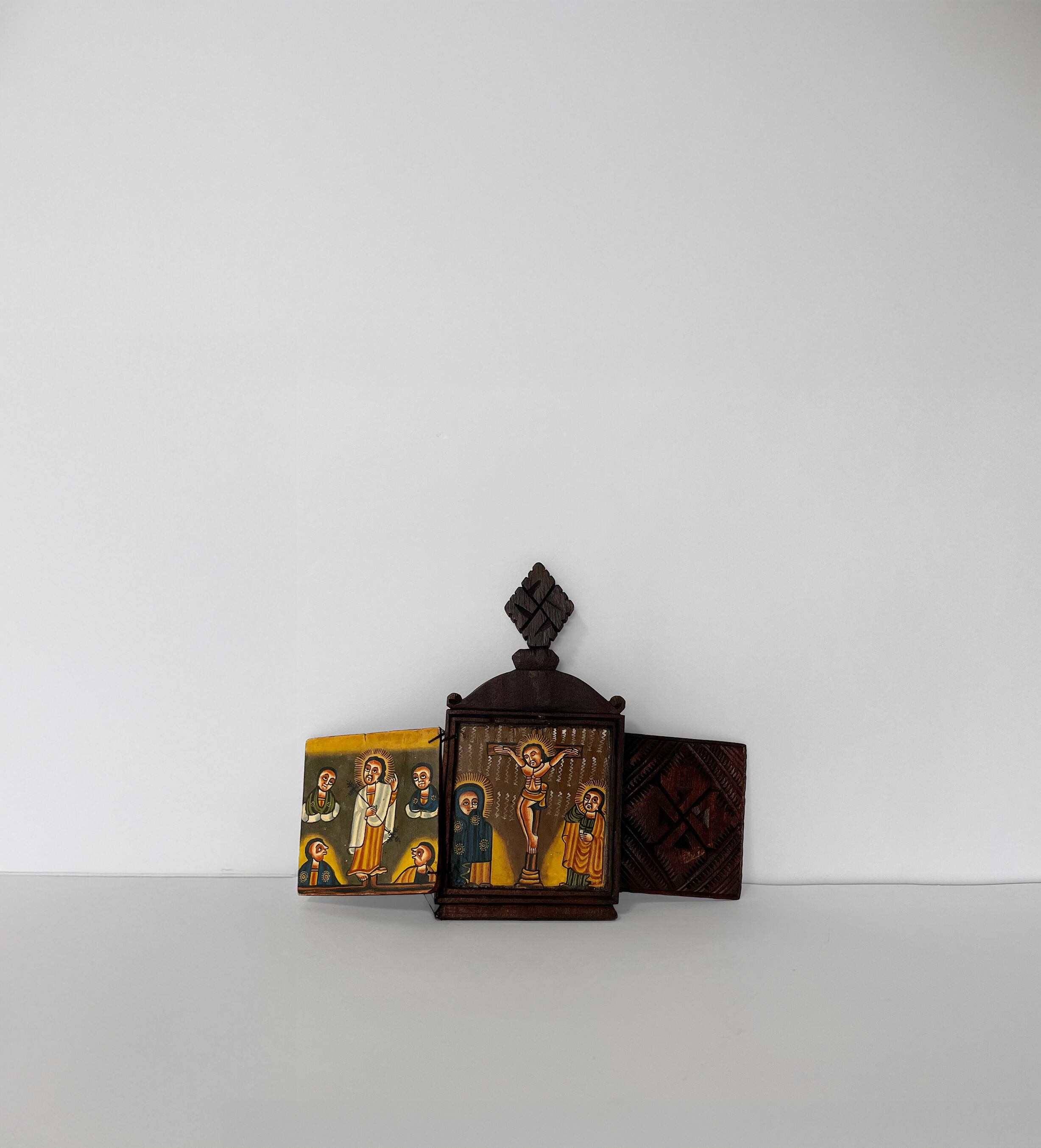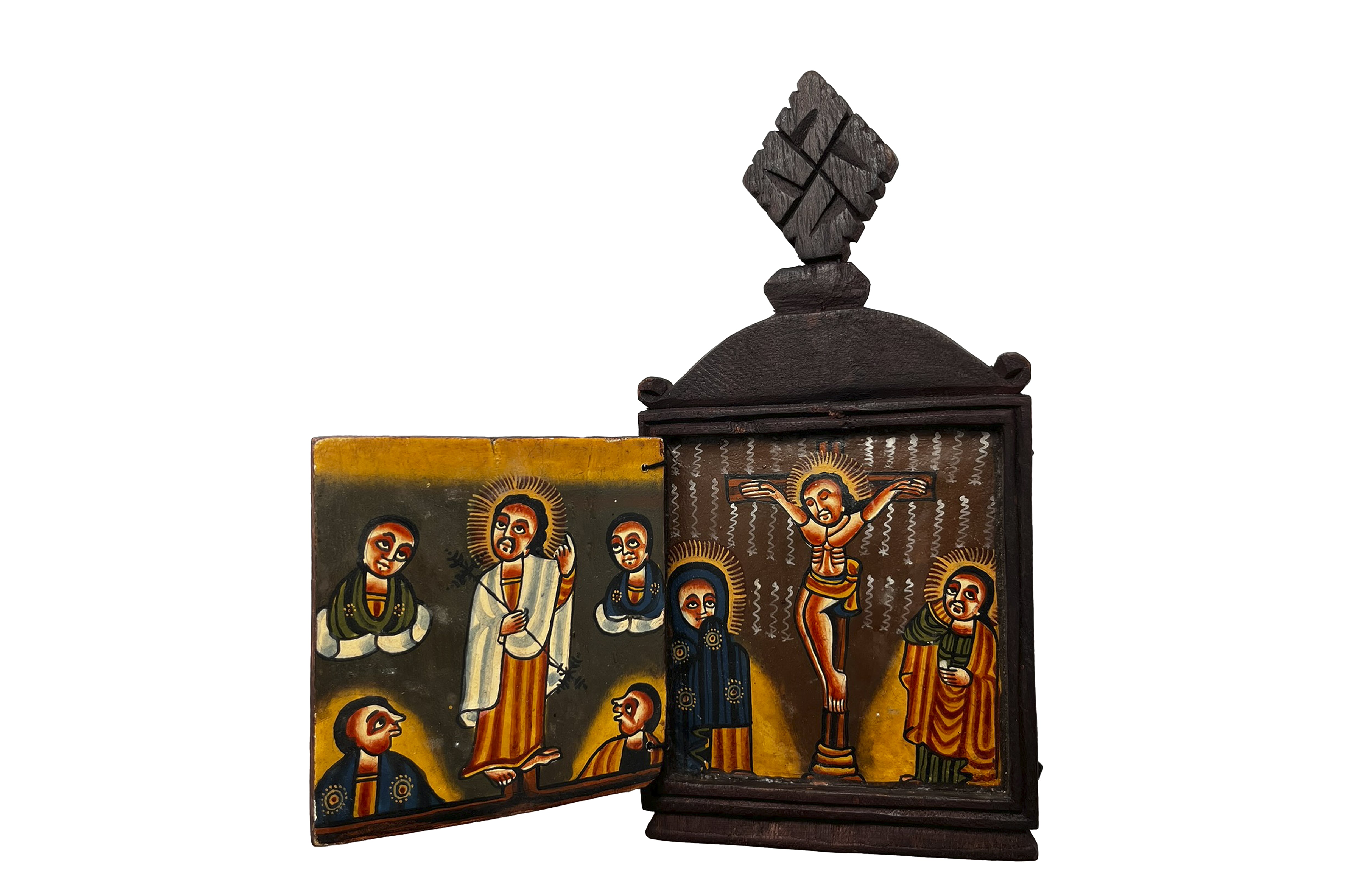 エチオピアで作られた木製のイコン(宗教画)。