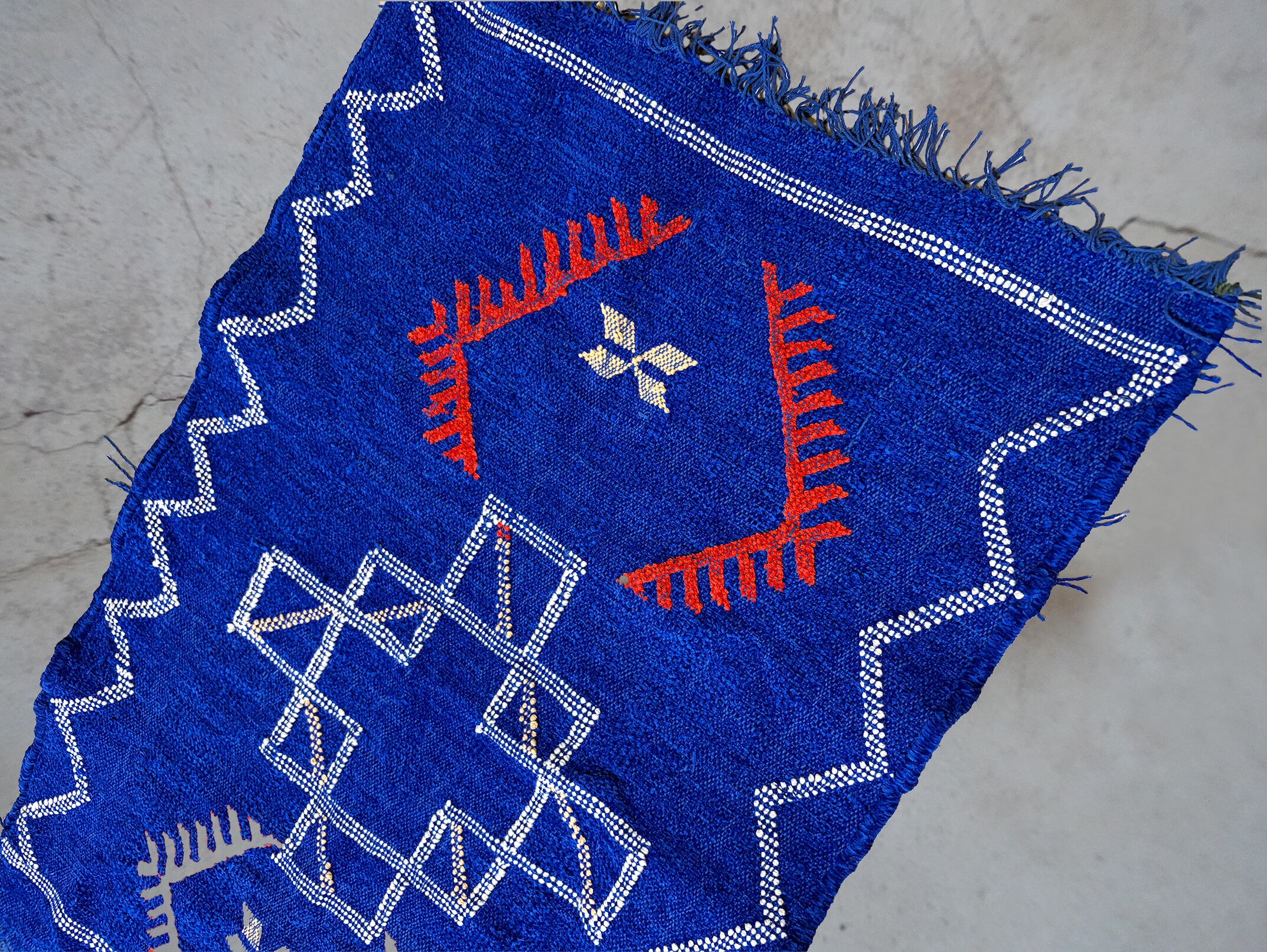【sold out】モロッコ ベルベル(アマジグ)の伝統刺繍ラグ (Blue)