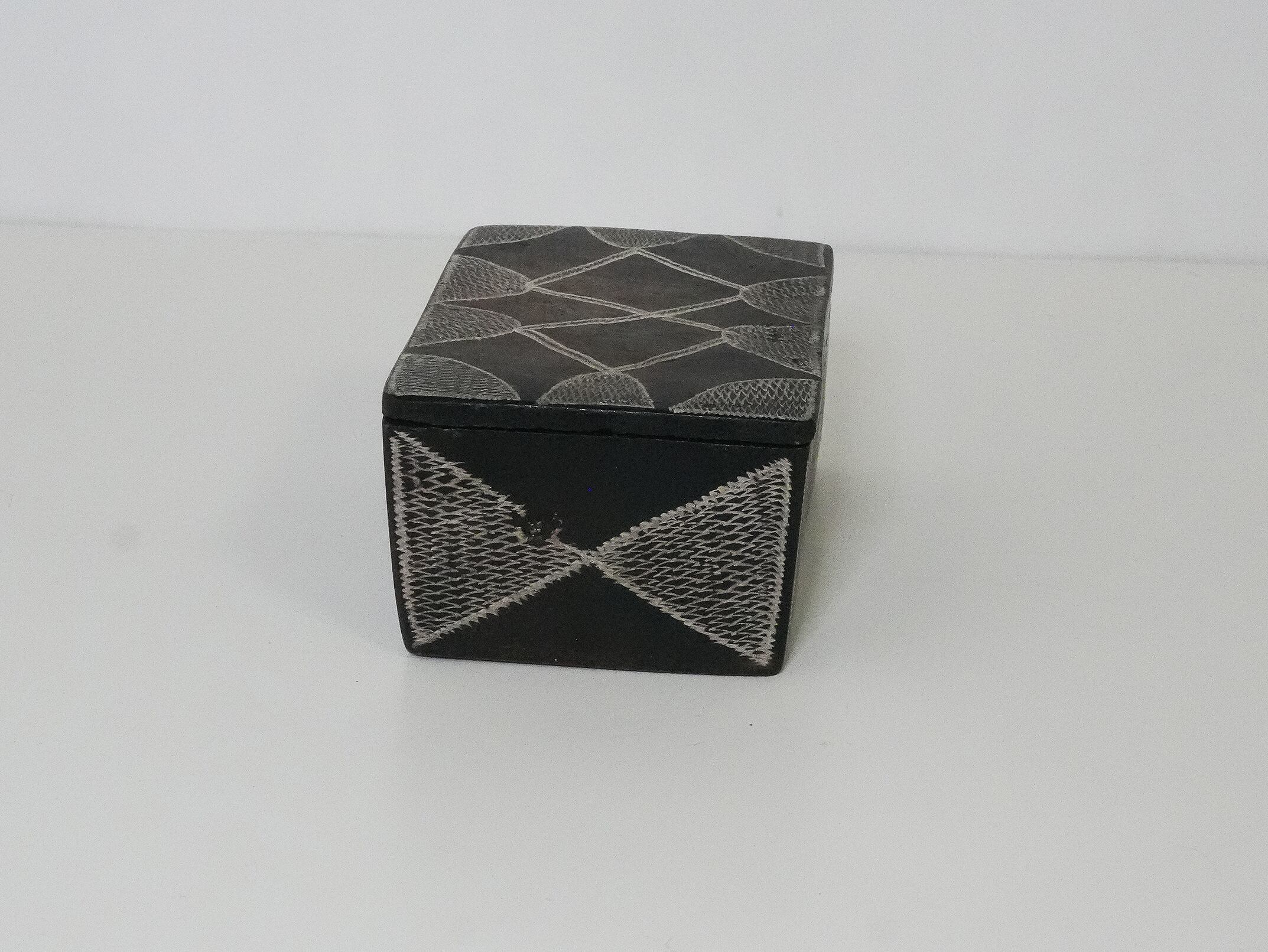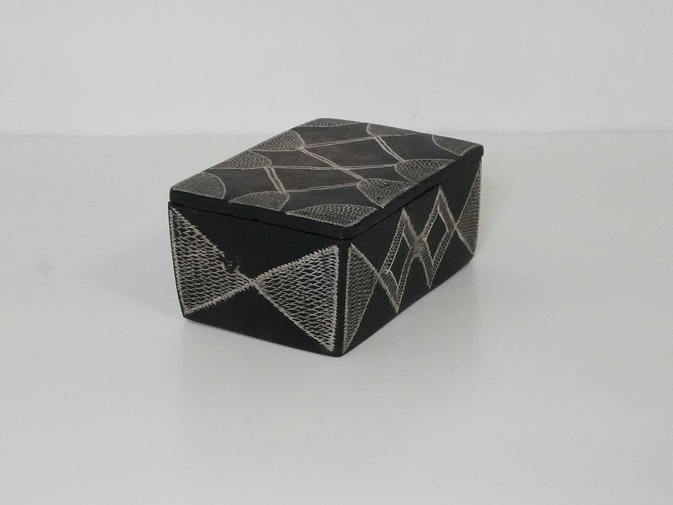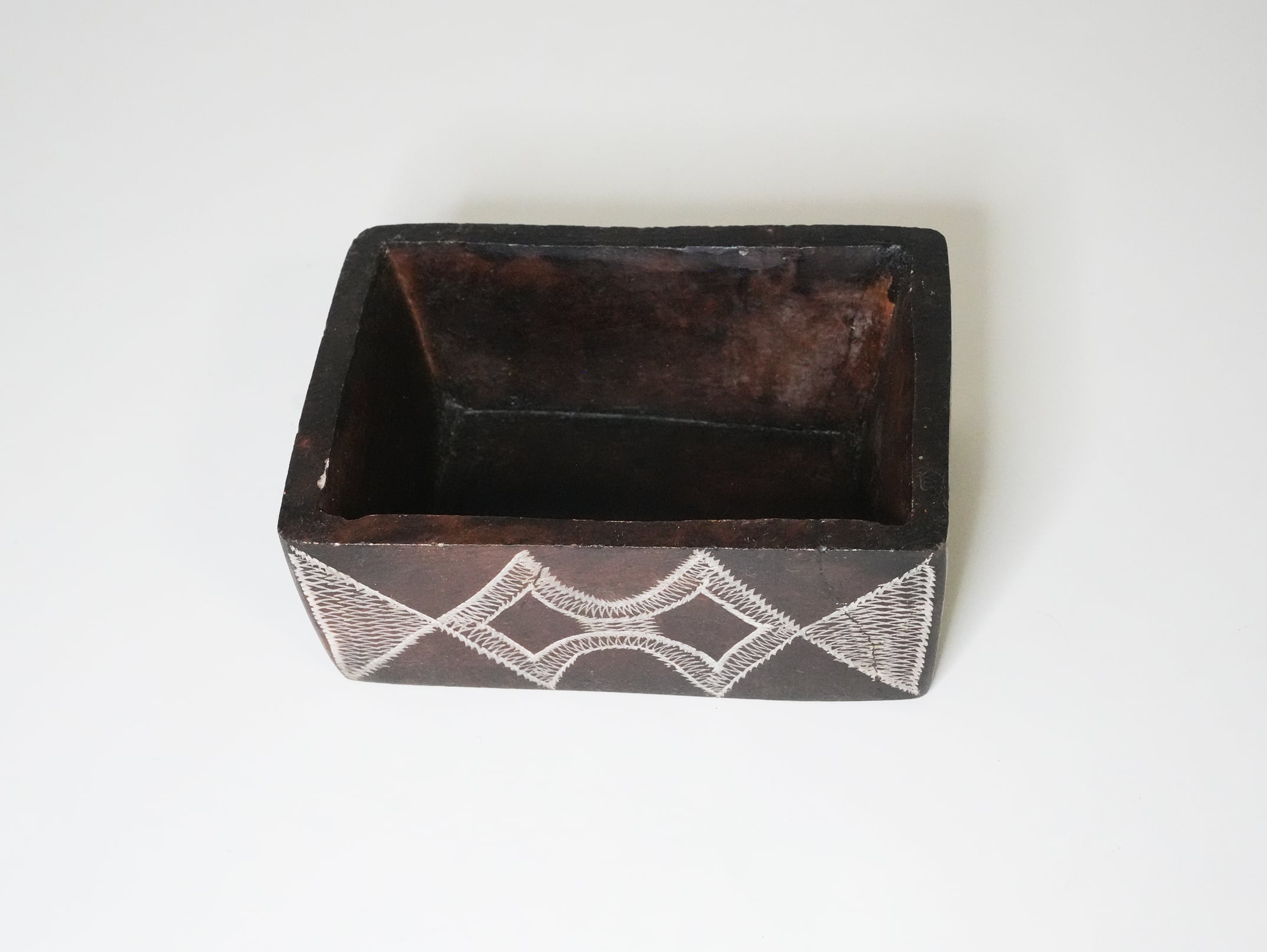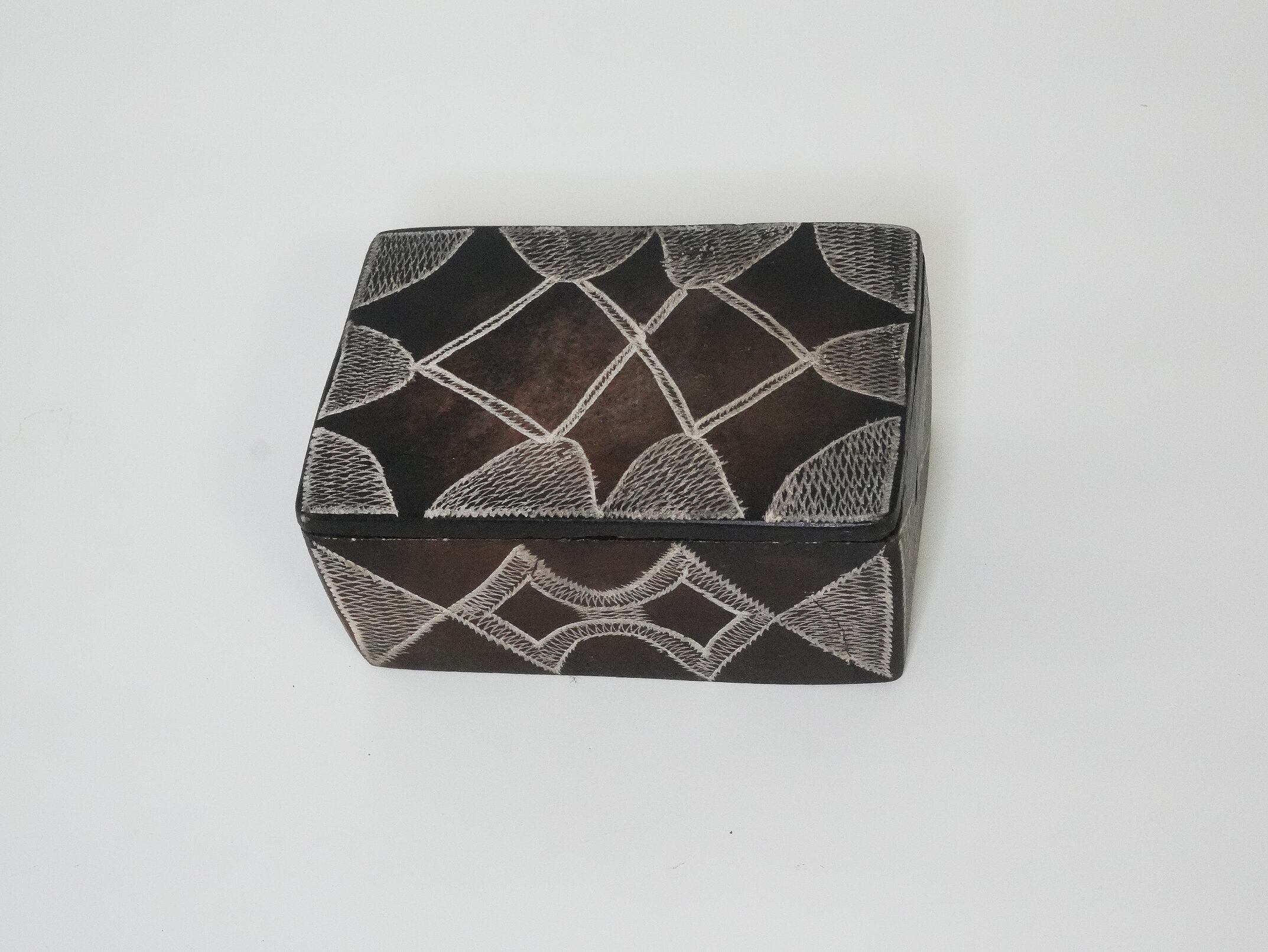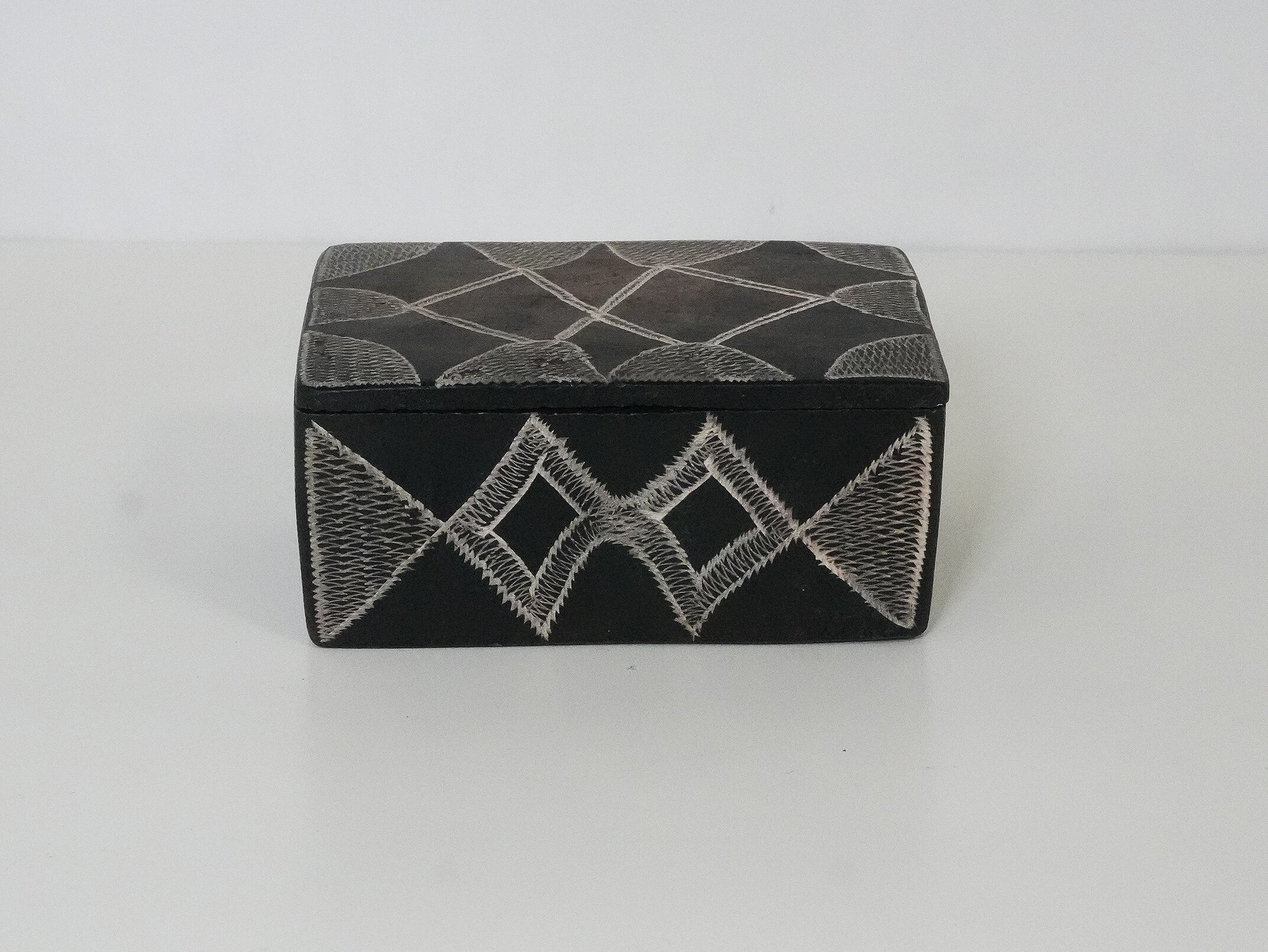 しっとりとした質感、そして手彫りのアマジグ模様が相まって、ただの小物入れを超えた強い存在感を放っています。