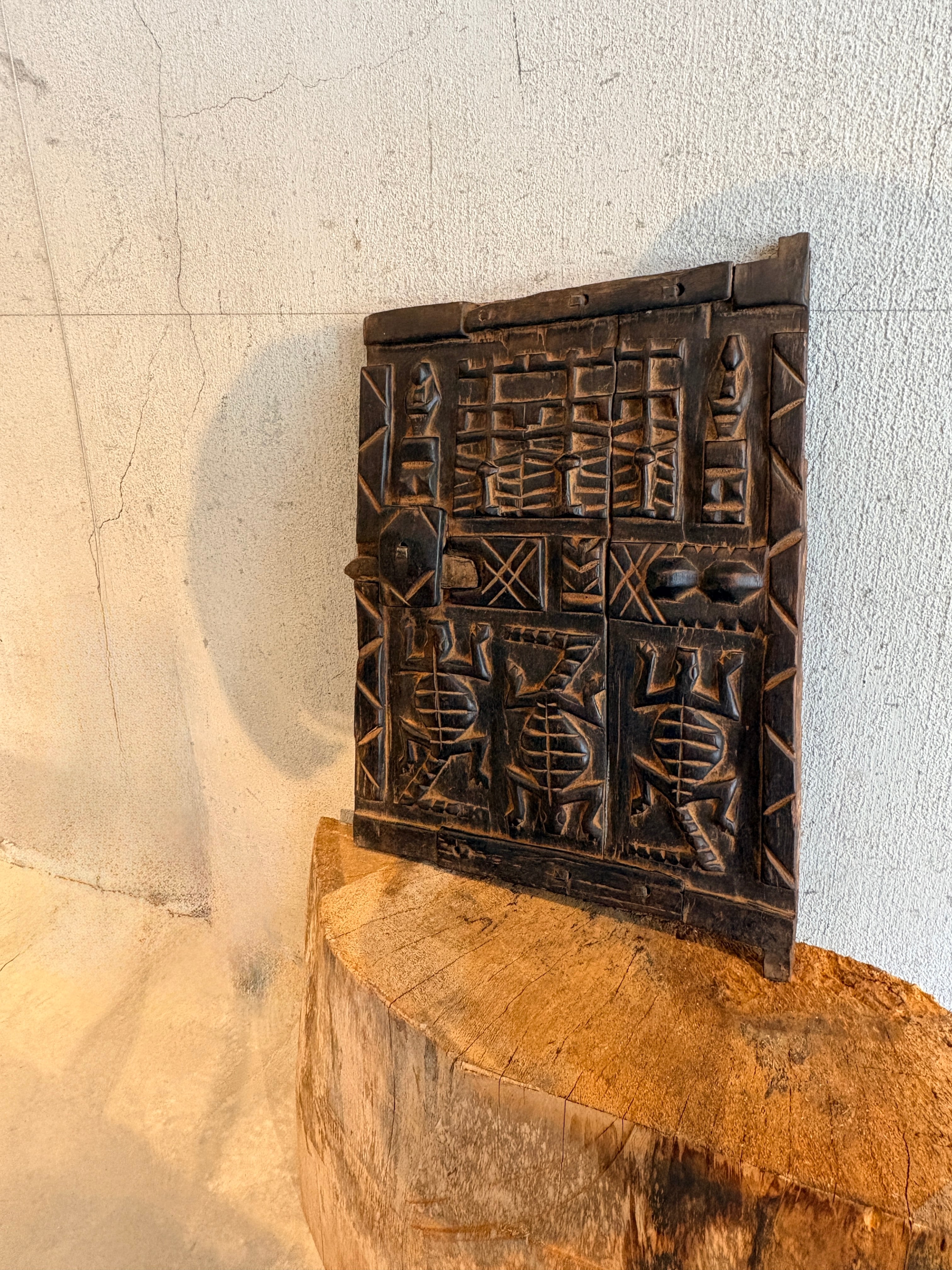 These doors were used not only as barriers for granaries or the entrances of homes, but also as symbolic protectors—invoking the blessings and protection of the spirits, ancestors, and forces of nature. They embody the Dogon worldview and serve as a medium of spiritual communication.