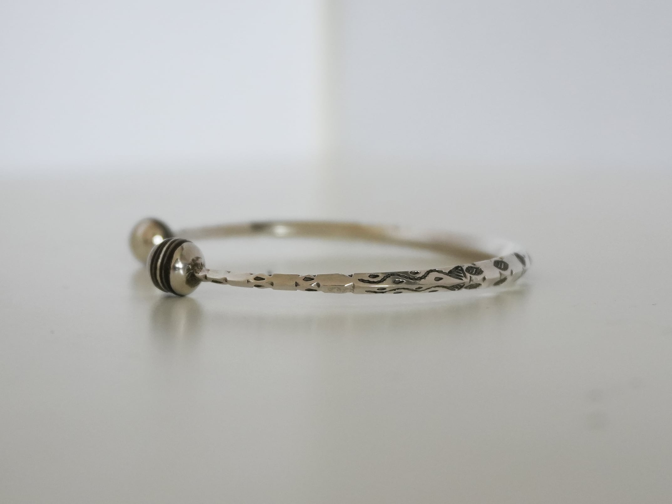 このように、バングル全体に施された模様一つひとつが、それぞれの意味を持ちながらも調和し合い、ひとつの物語を形づくっています。