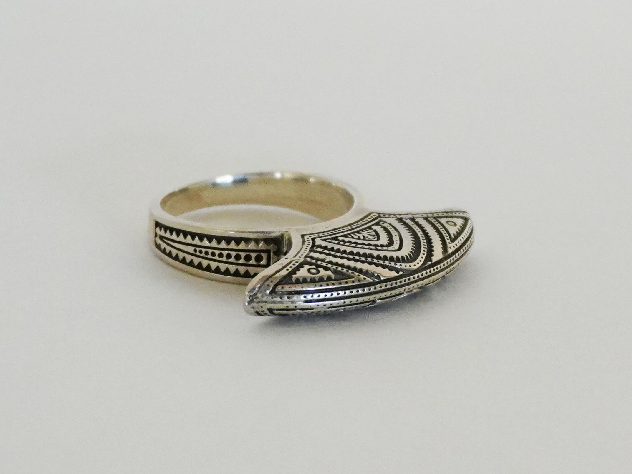 【唯一無二の存在感を放つ、トゥアレグの重層的三角模様シルバーリング】