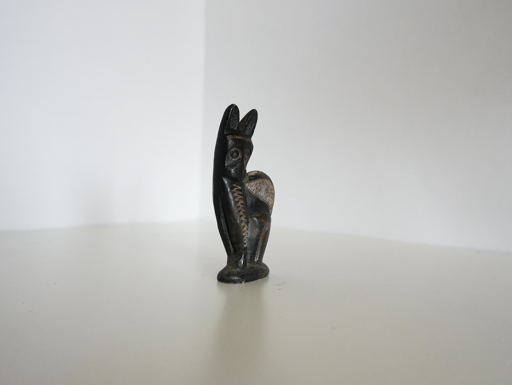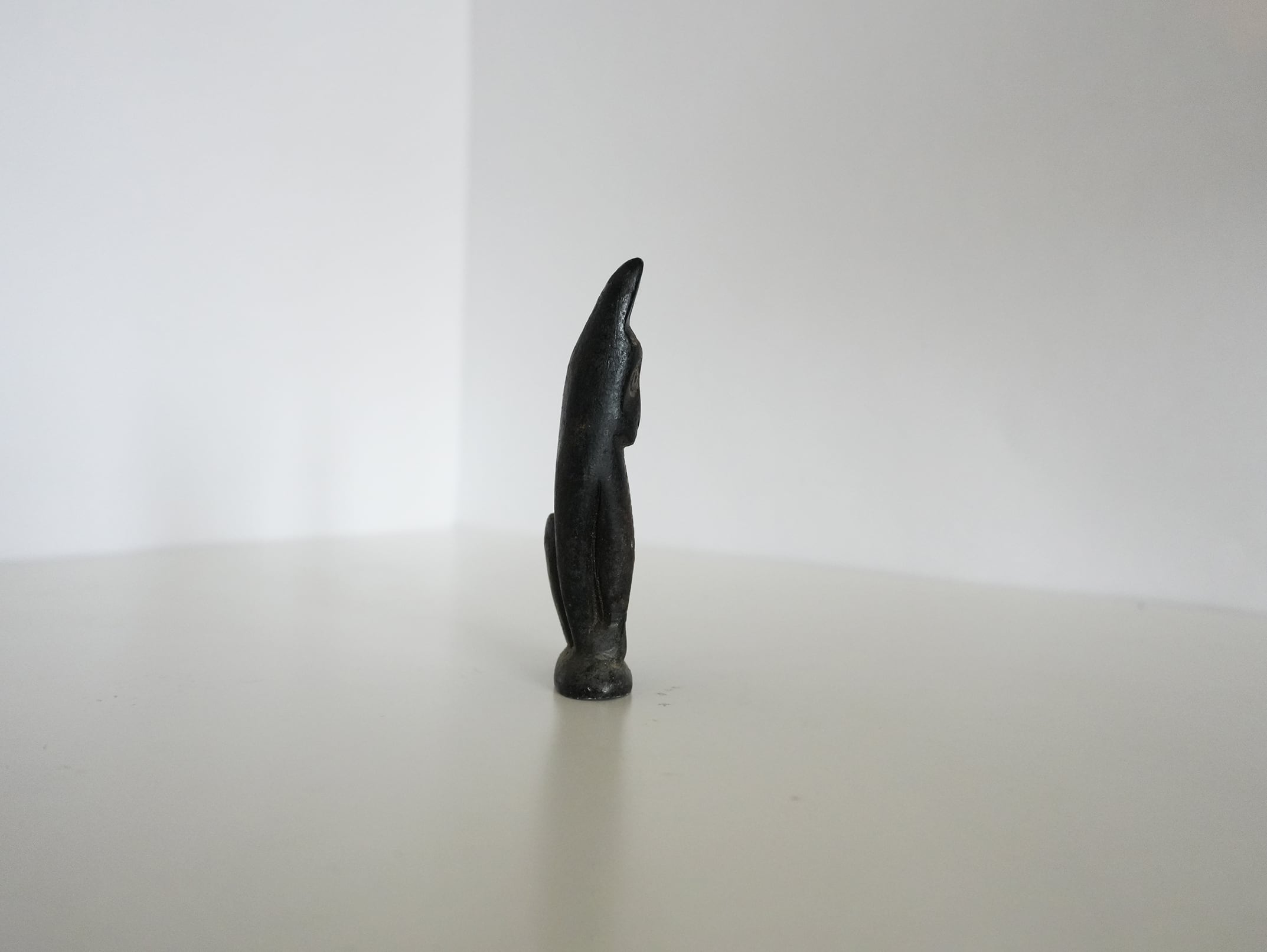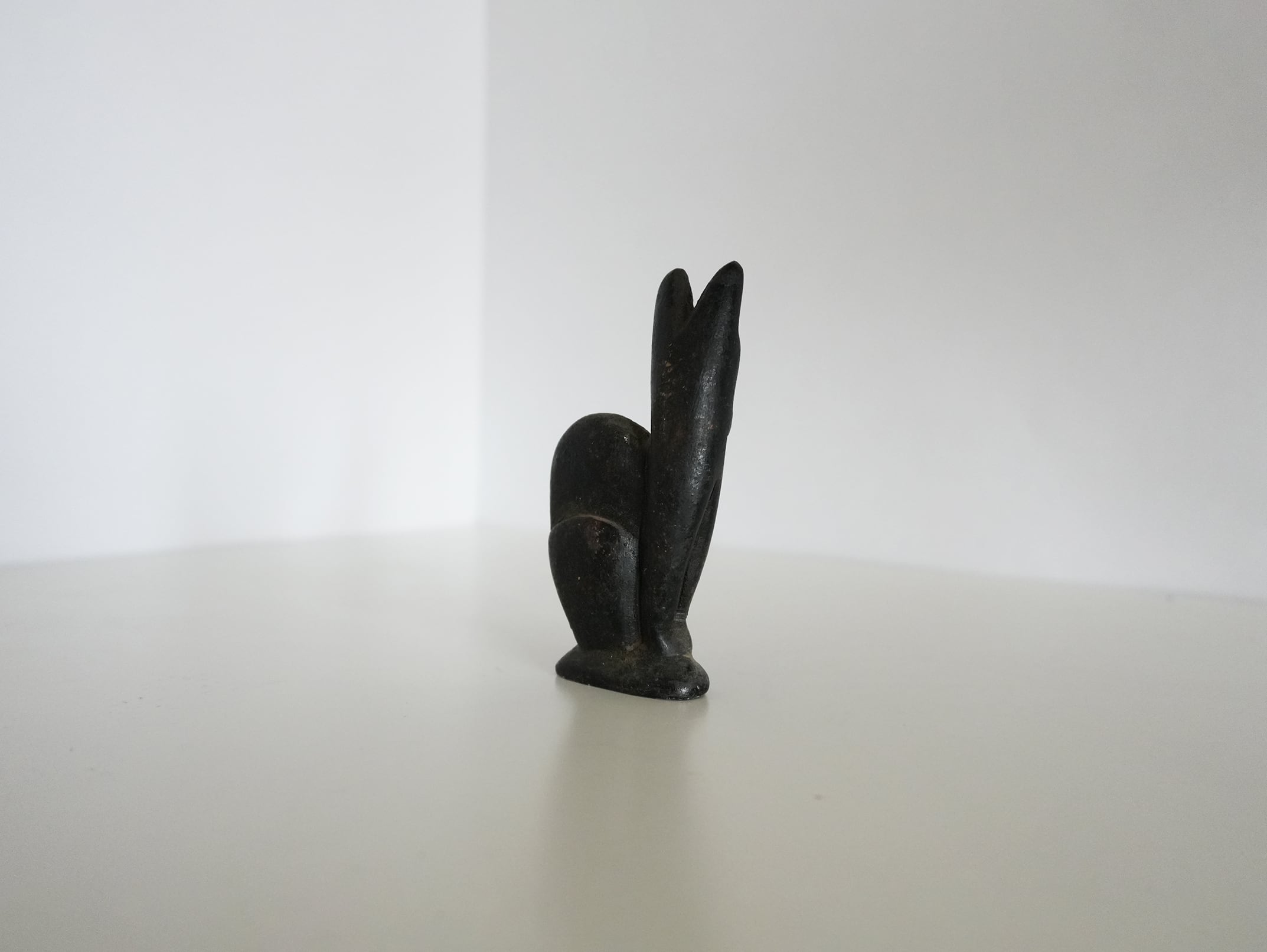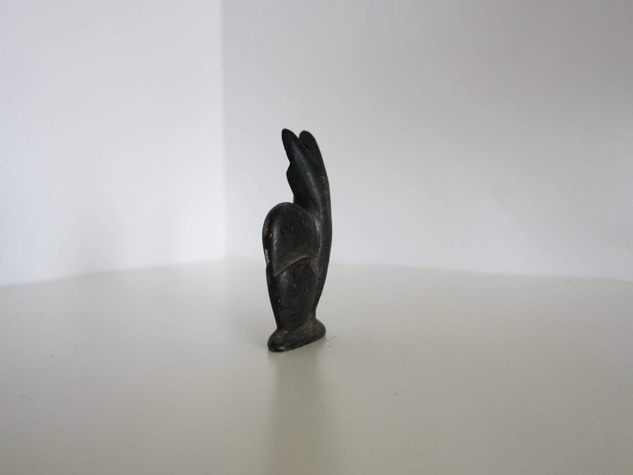 This figurine, carefully selected by wouet, is carved from soapstone, a material known for its soft and smooth texture.