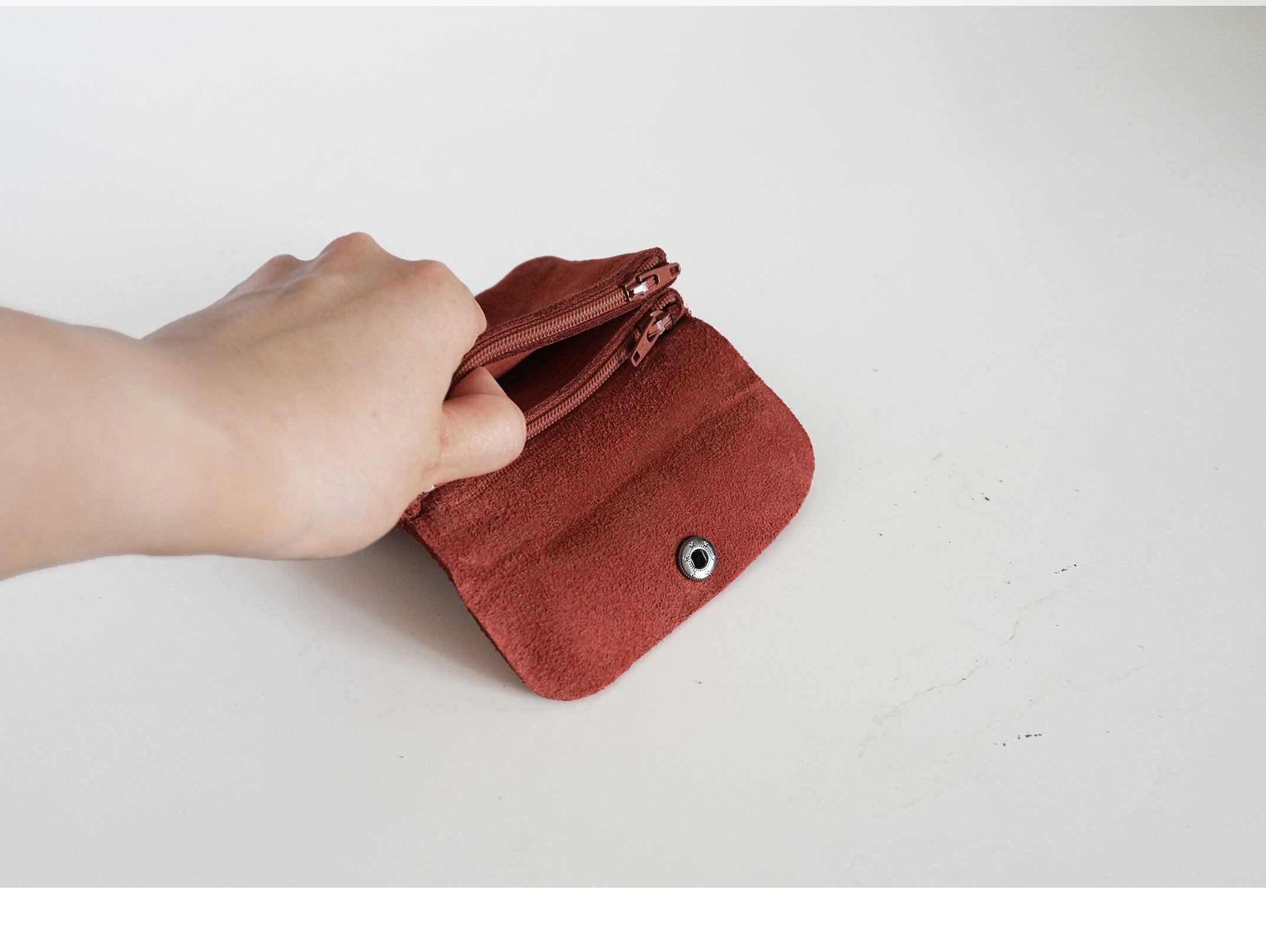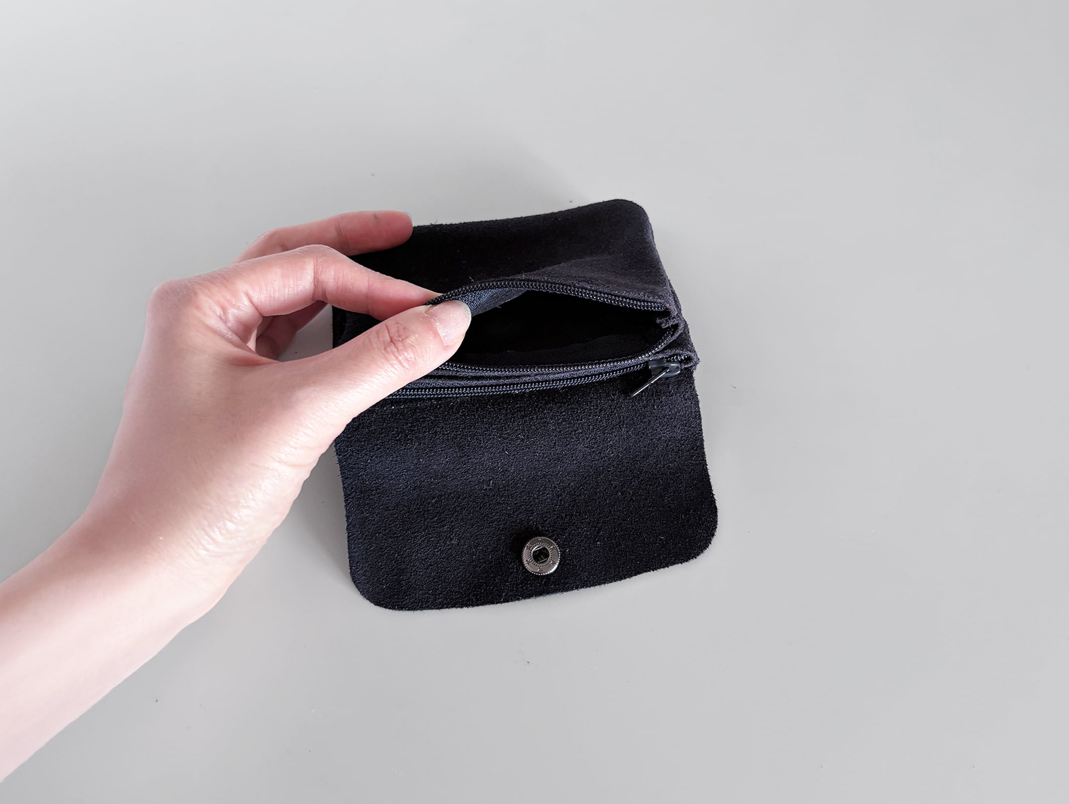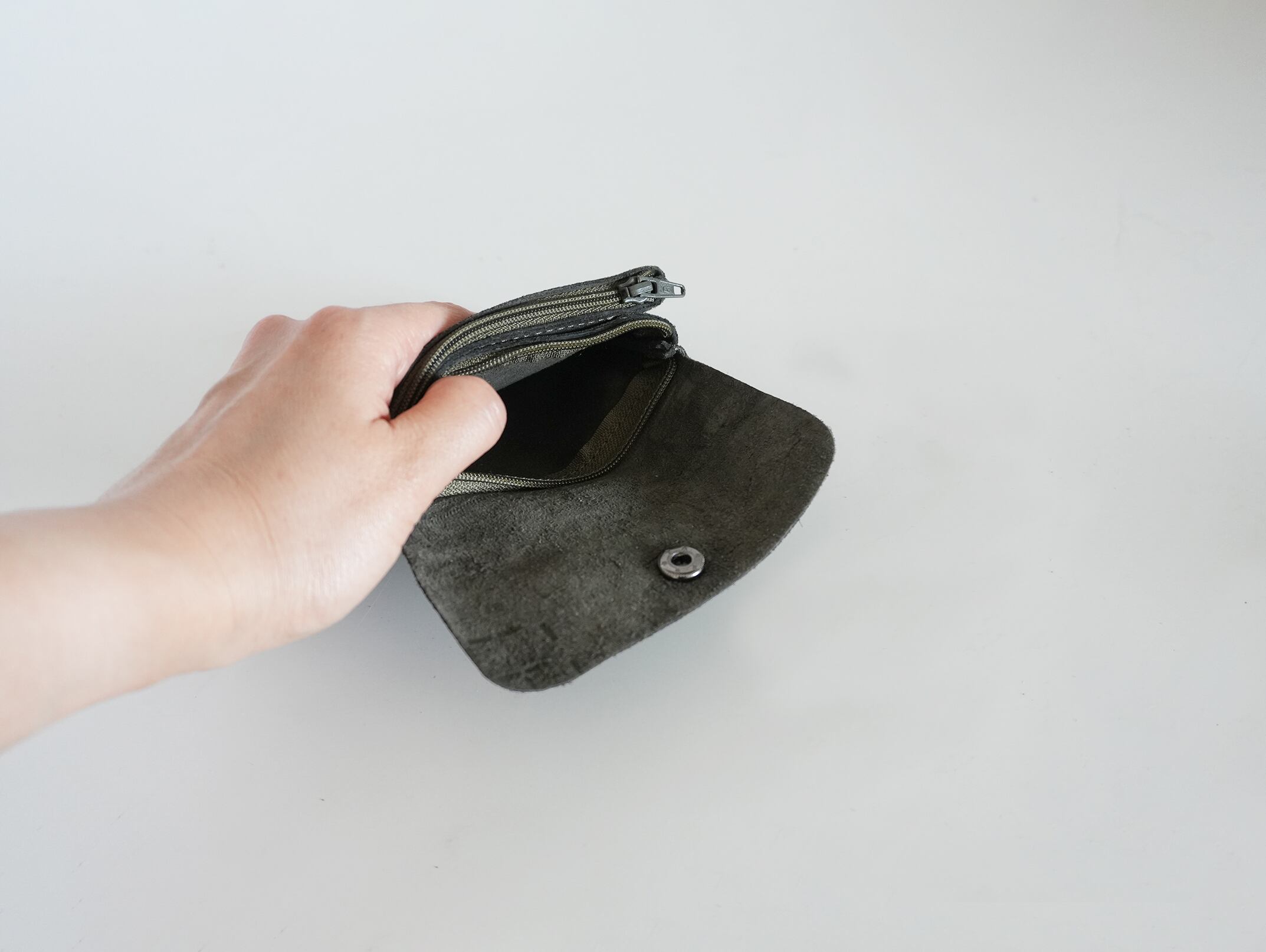 シンプルなスナップボタン式で、カードや小銭、アクセサリーや小物入れとしても活躍します。すべてが職人の手作業による限定品です。
