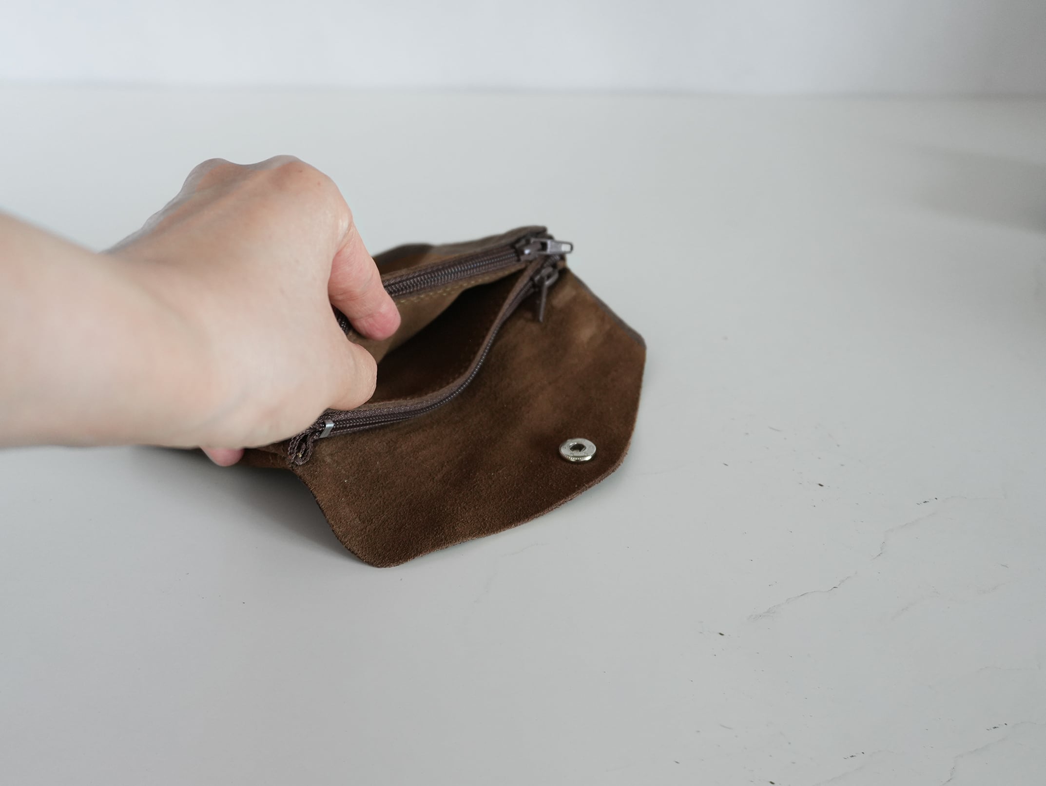 シンプルなスナップボタン式で、その柔らかな質感とシンプルなデザインから、財布としてだけでなく多彩な用途にお使いいただけます。