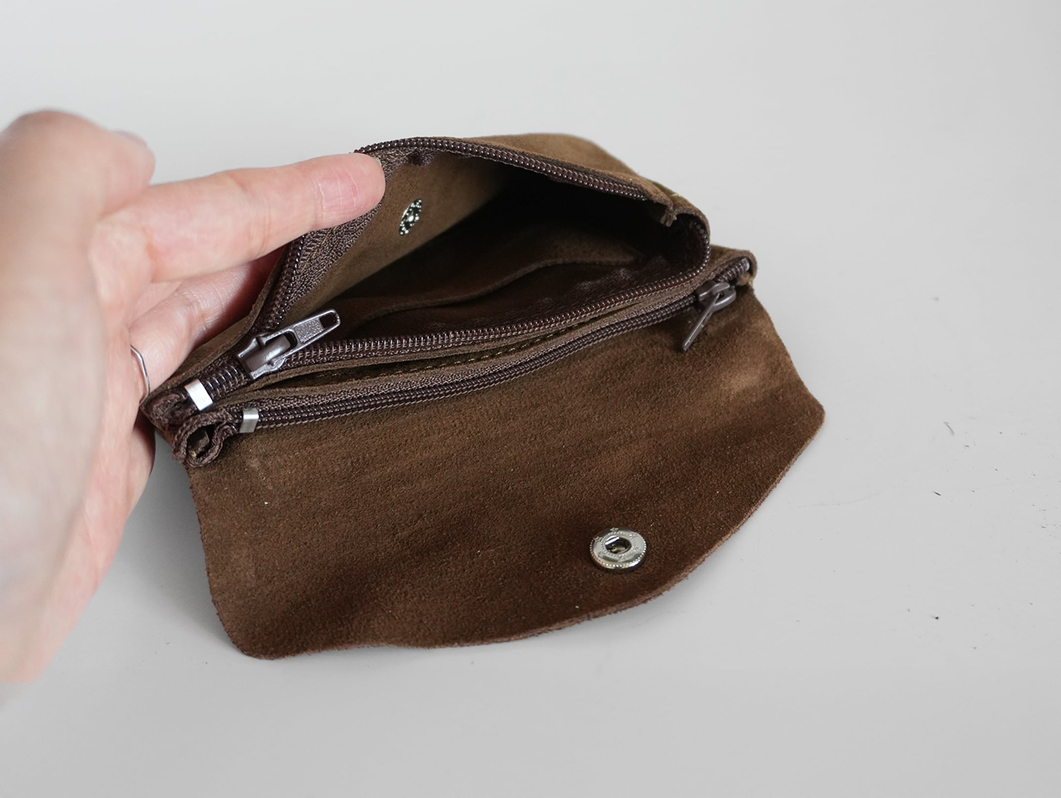 こちらのスエード財布は、モロッコの古都フェズやマラケシュで代々受け継がれてきた革細工の伝統を背景に持つ、ハンドメイドの一点ものです。