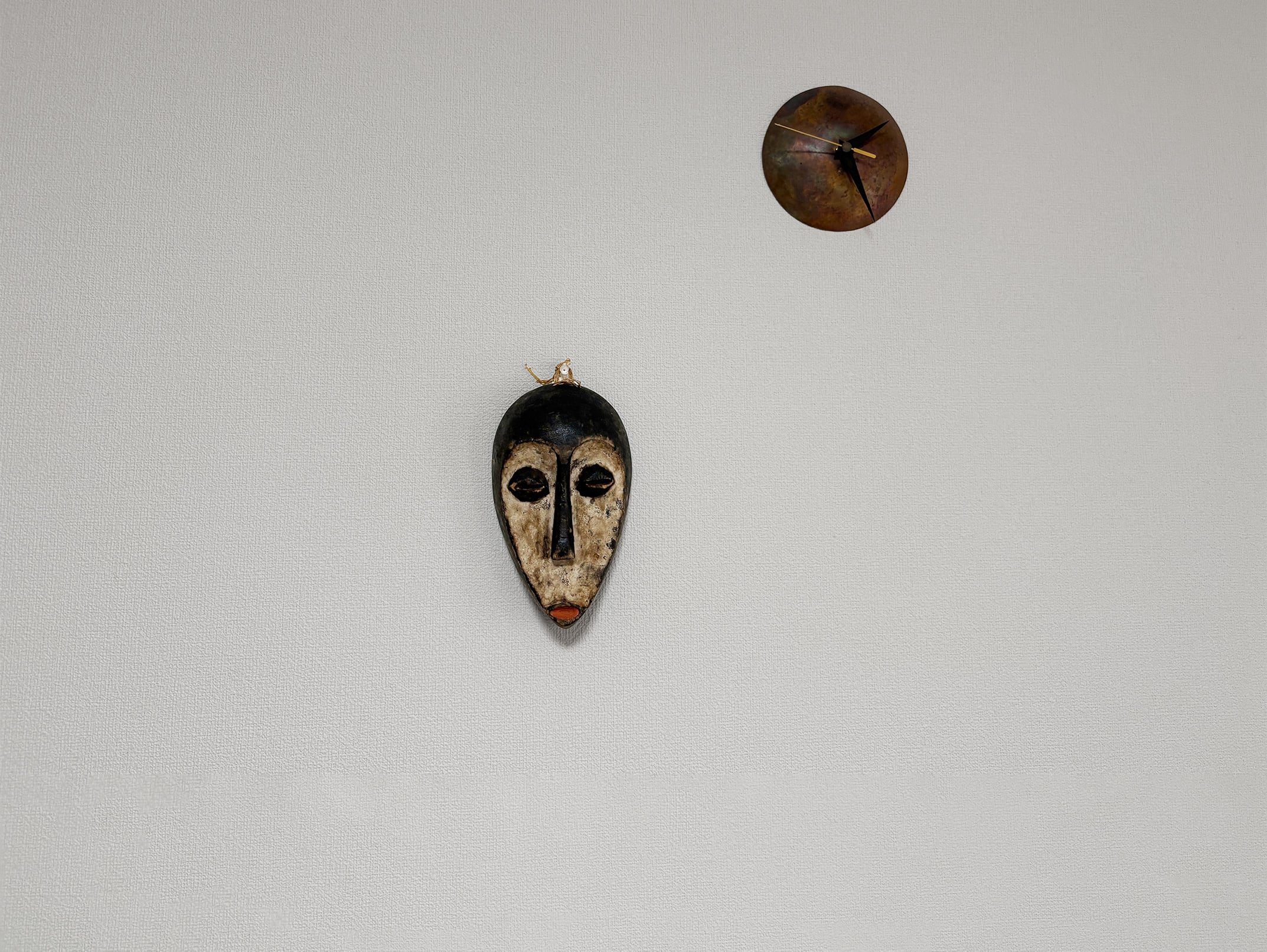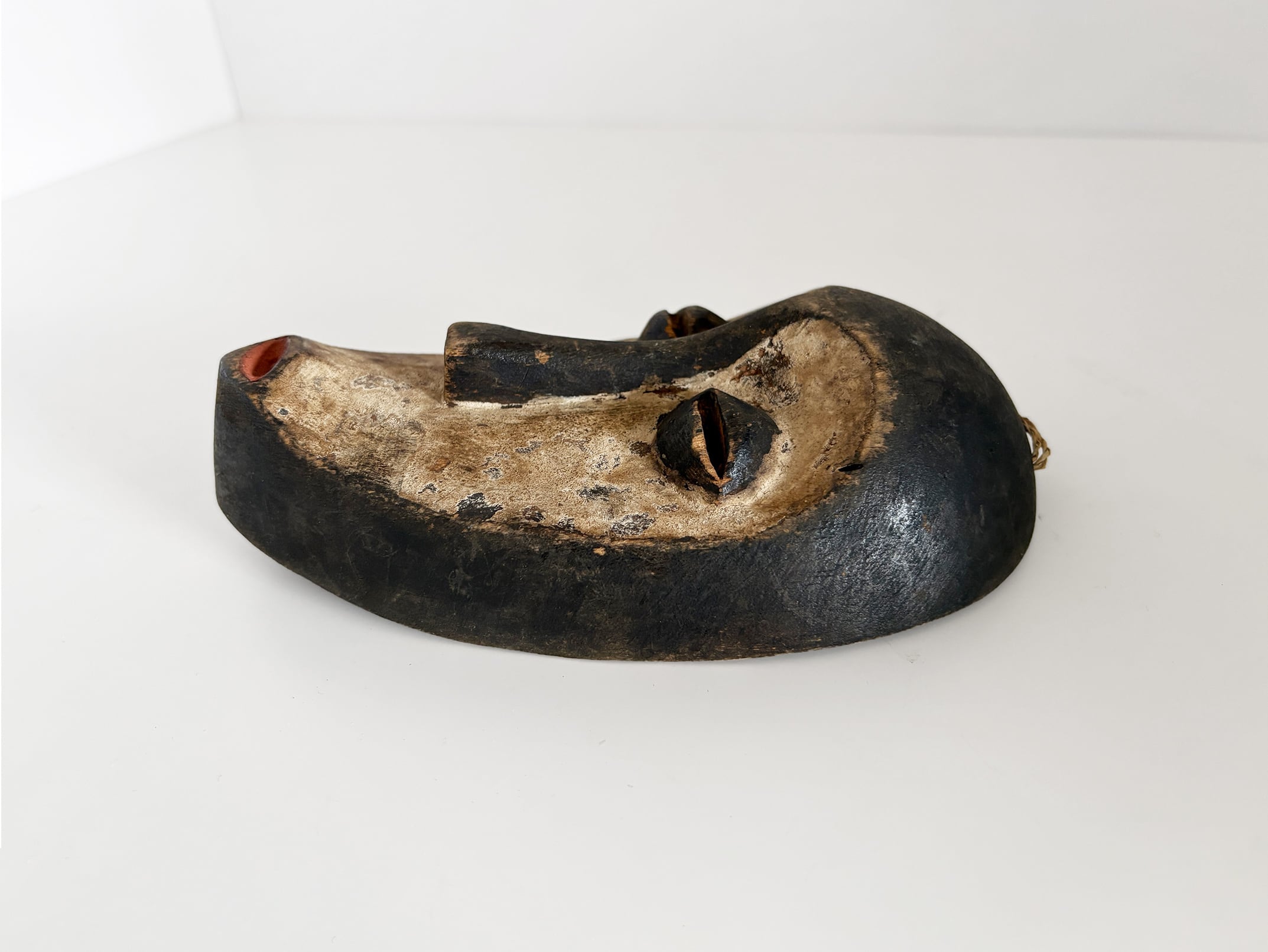 This piece, carefully selected by wouet (ウート), is a symbolic “passport mask” — a small wooden mask distinct from the larger ritual masks.