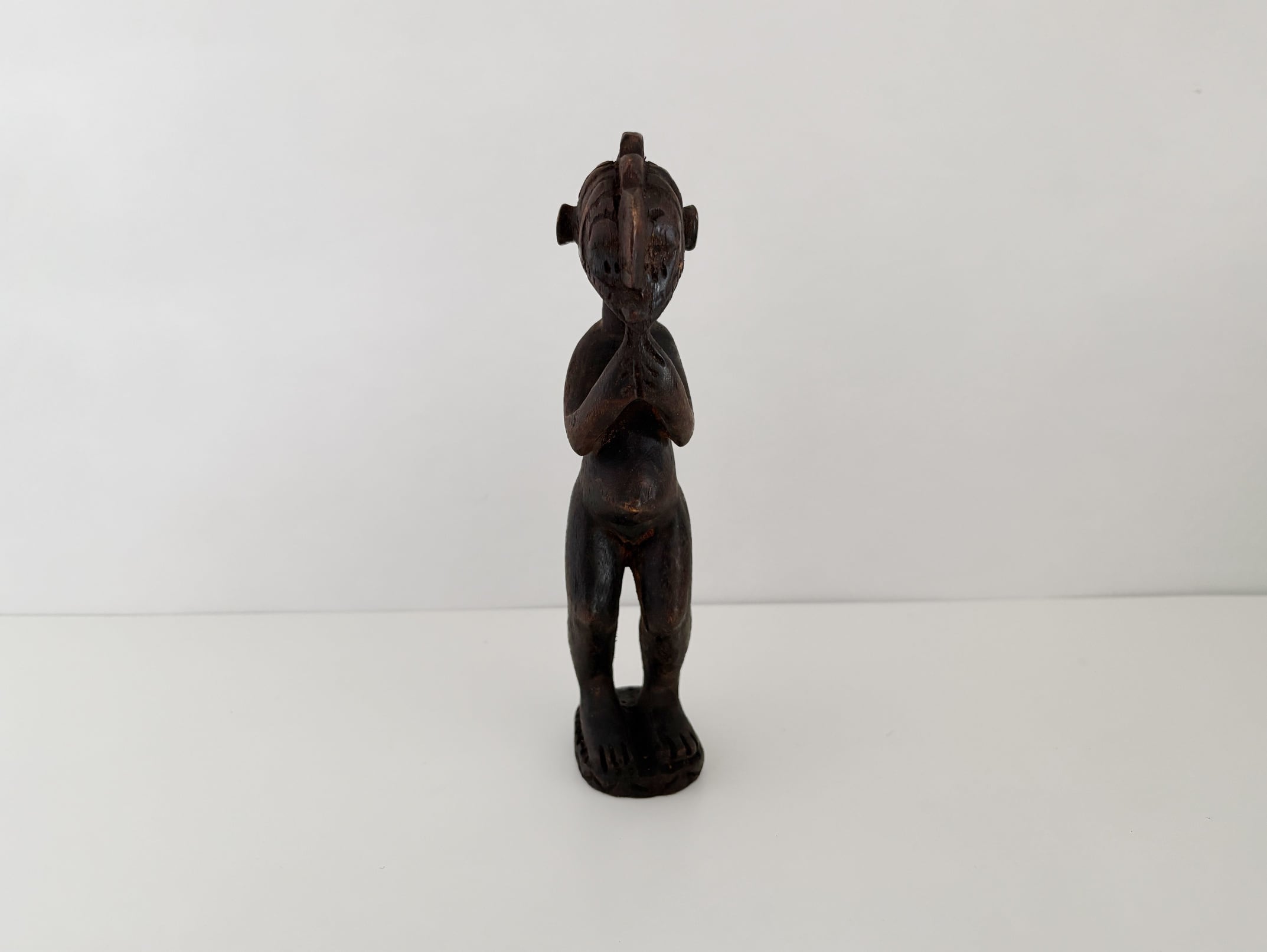 落ち着いたブラウンの木肌と手彫りの温もりをもつこのニンバ像は、モダンインテリアや北欧テイストの空間にも自然に溶け込みます。