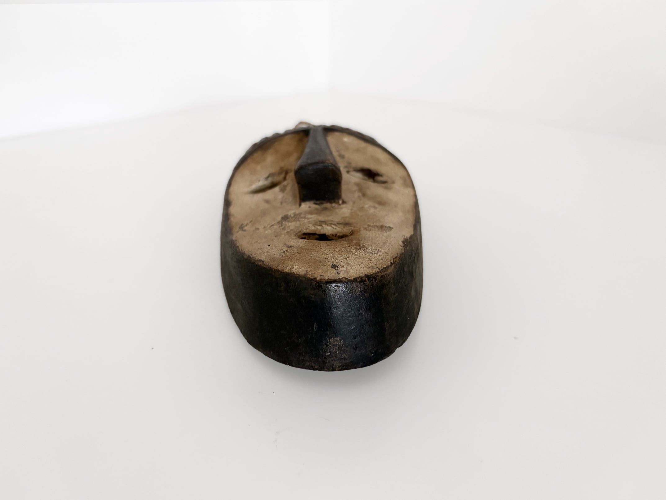 This mask, used in the hierarchical initiation system known as Bwami, is not a mere ornament—it serves as a symbolic tool of morality and wisdom. Within Bwami society, masks like this one are used to illustrate the stages of human growth and to communicate lessons about virtue and life. The face, coated in white kaolin clay, represents purity of the soul and a deep connection to the ancestors, while its serene expression embodies tranquility and spiritual depth.