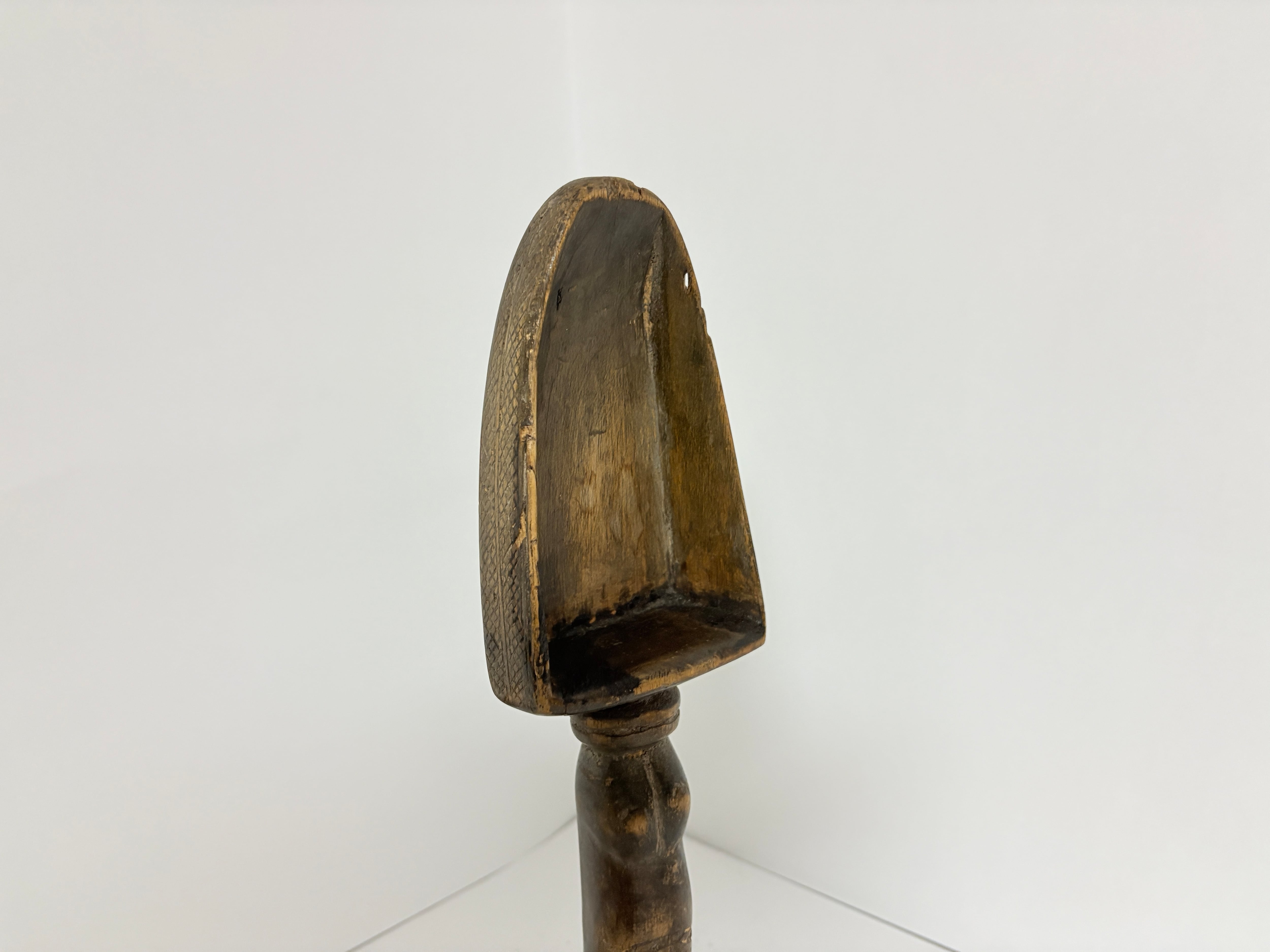 Most Baule spoons feature only the upper body carved into the handle, making this full-figure design with legs exceptionally rare and esteemed. Though sometimes used to serve ritual food, it primarily functioned as a sacred offering, a vessel of respect and abundance.