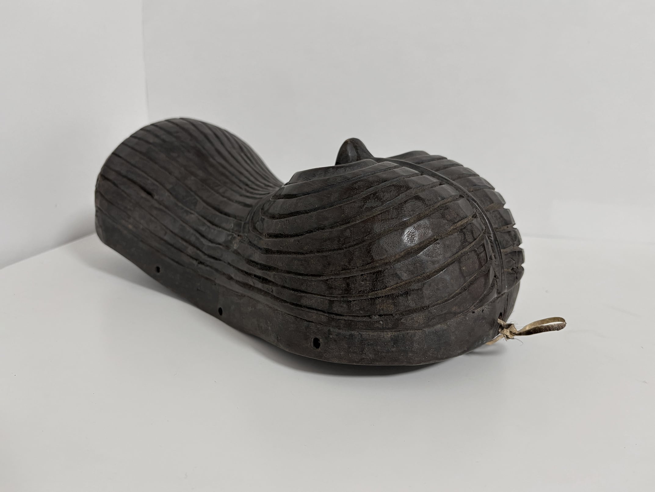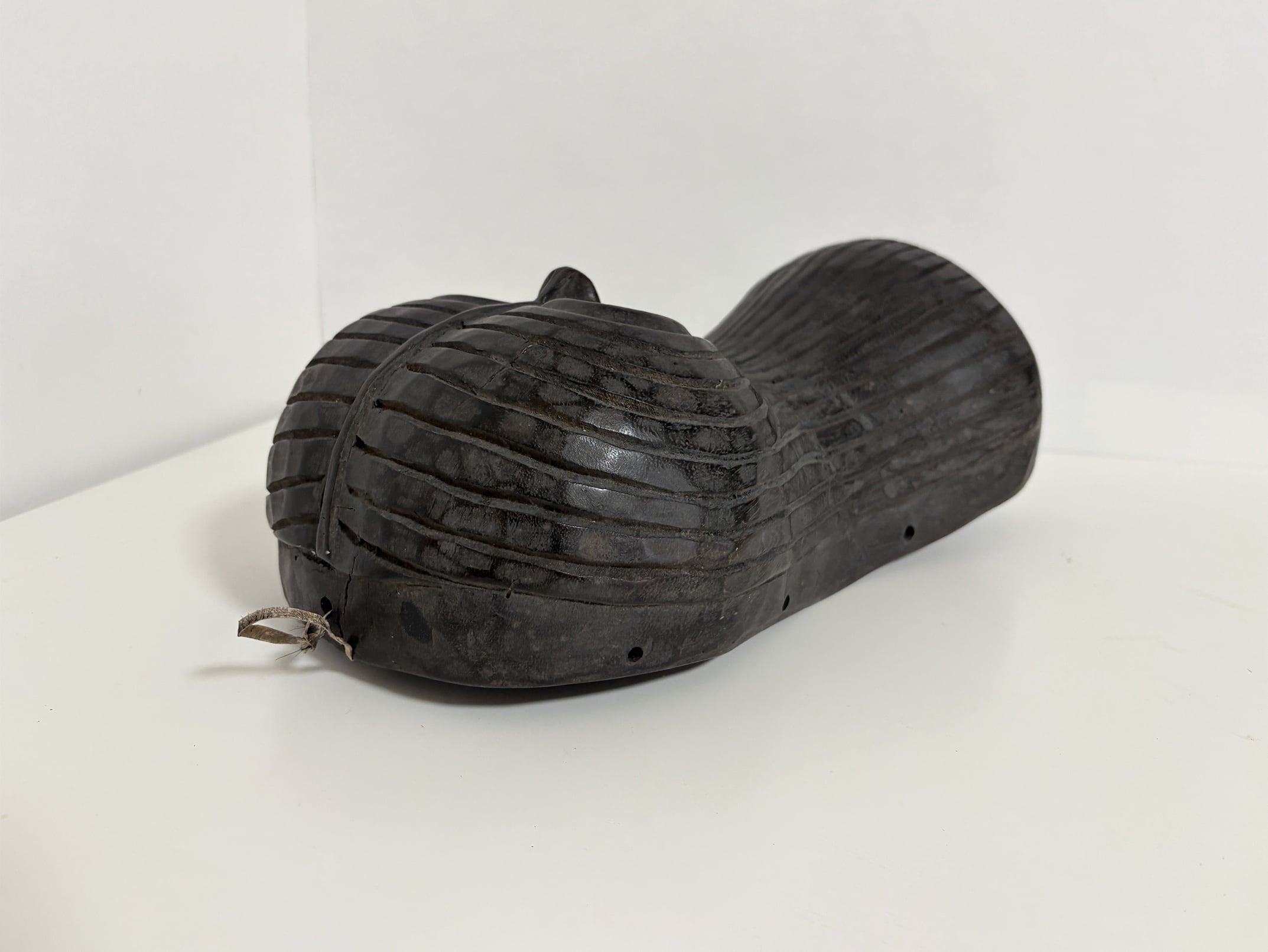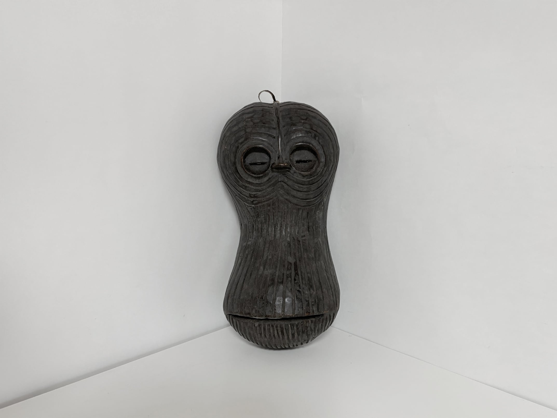 The mask was entirely hand-carved, using adzes and chisels, as shown by the visible tool marks on its interior surface. Its smooth curvature and deep-cut eyes give the impression of movement and vitality. The dark patina, enriched by time and handling, reveals both the artistry and the age of the piece. The interior shows natural wear consistent with ritual use, attesting to its authenticity and cultural significance.