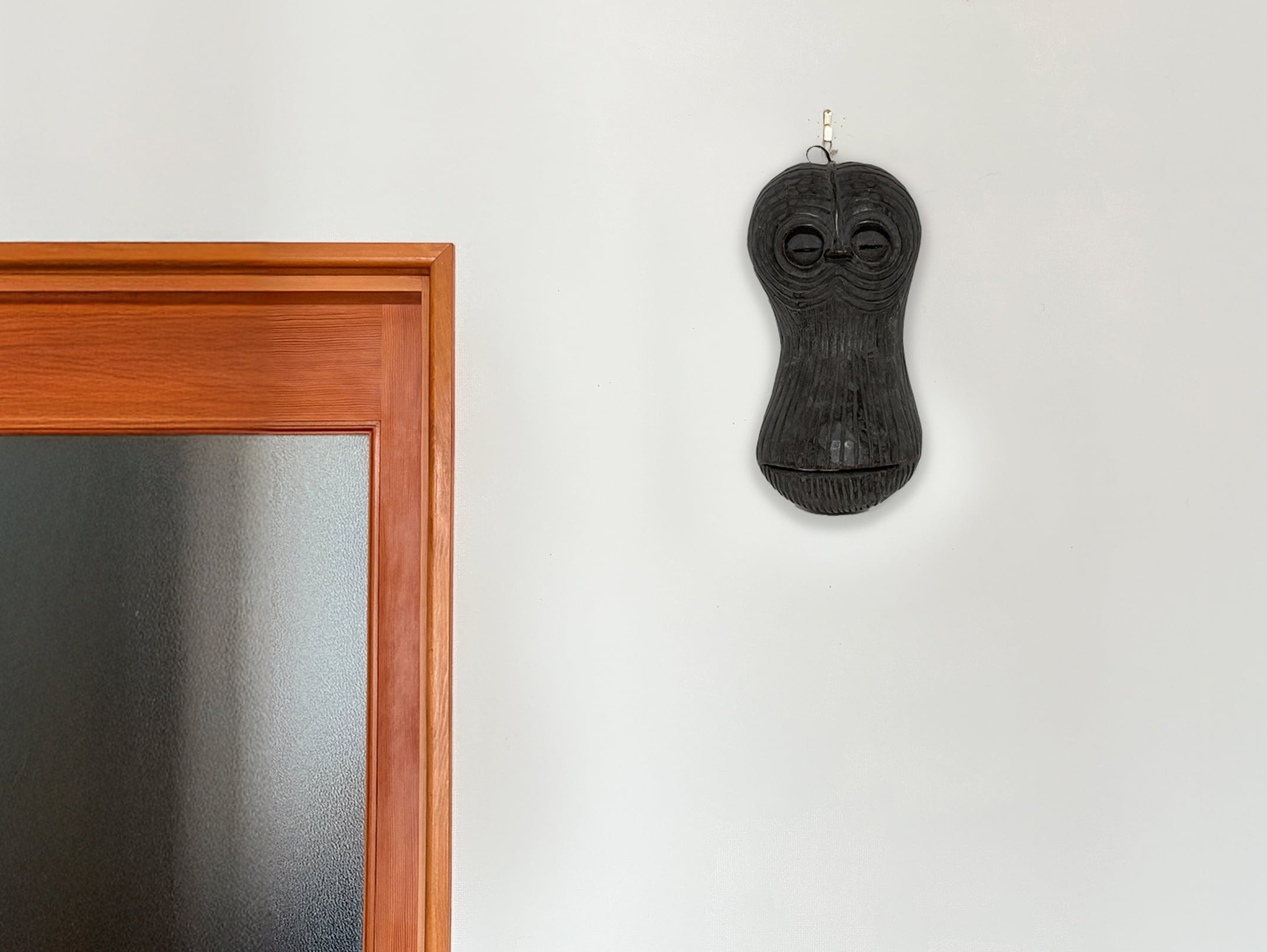As an interior piece, it makes a striking wall display, harmonizing effortlessly with modern or minimalist settings. The dark wood surface absorbs and reflects light beautifully, allowing the carved contours to shift in expression depending on illumination and angle.