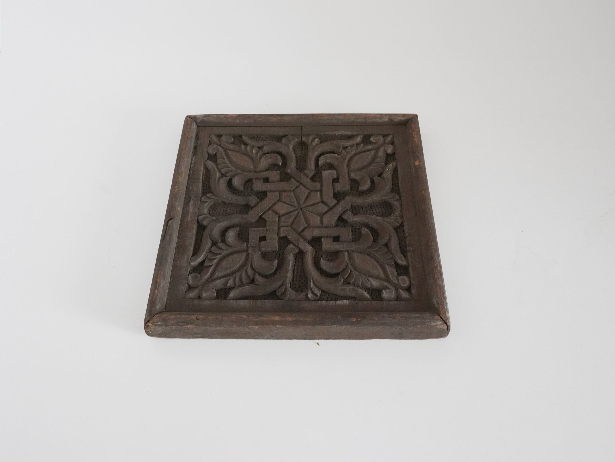 モロッコ 手彫りウッドパネル アラベスク装飾 ヴィンテージ ( アクリル板付き)