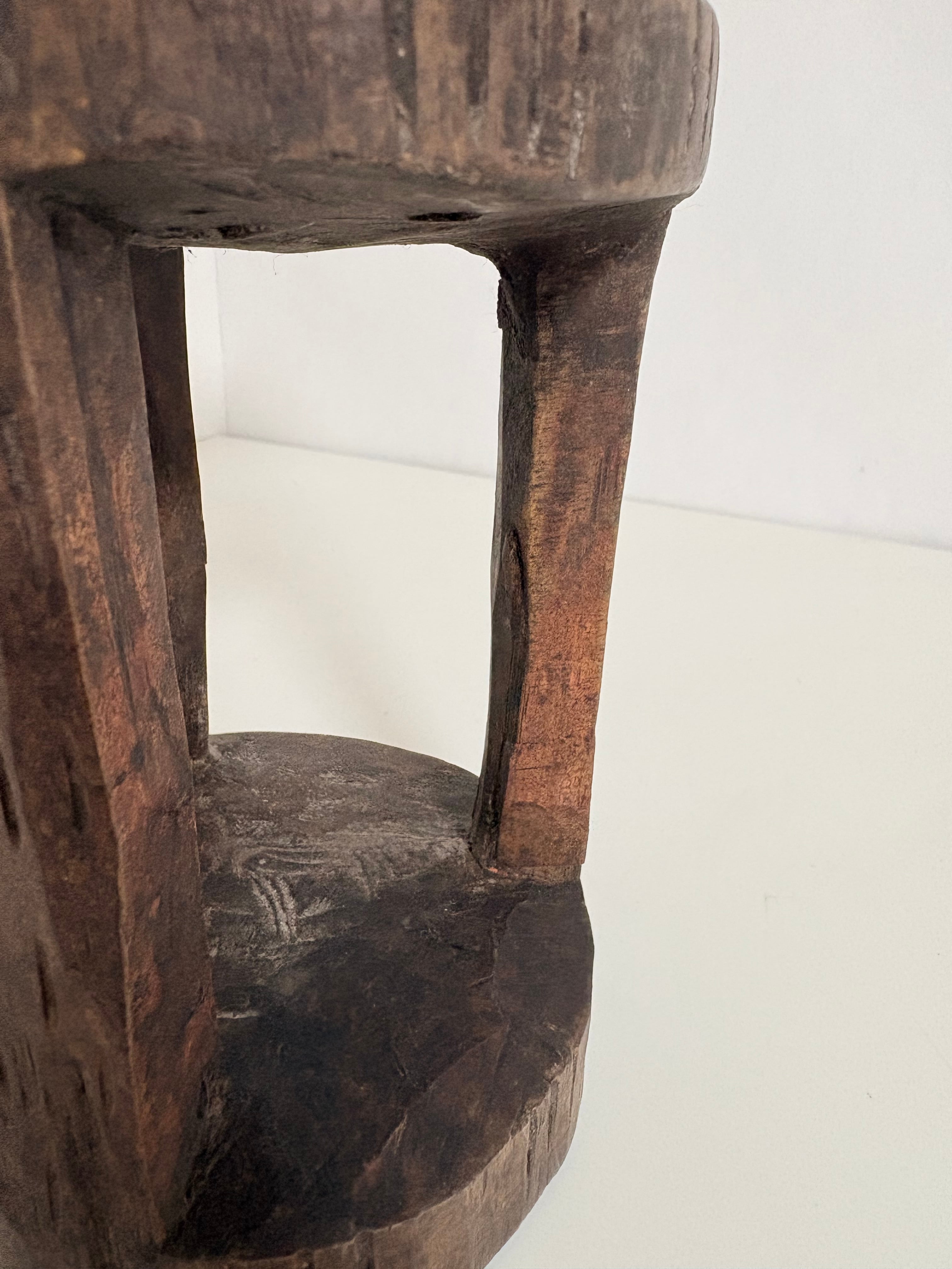 エチオピアの職人が手作業で彫り上げた小さな木製スツールです。