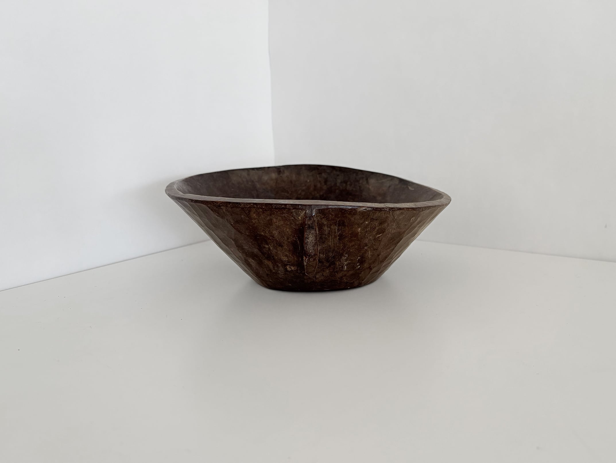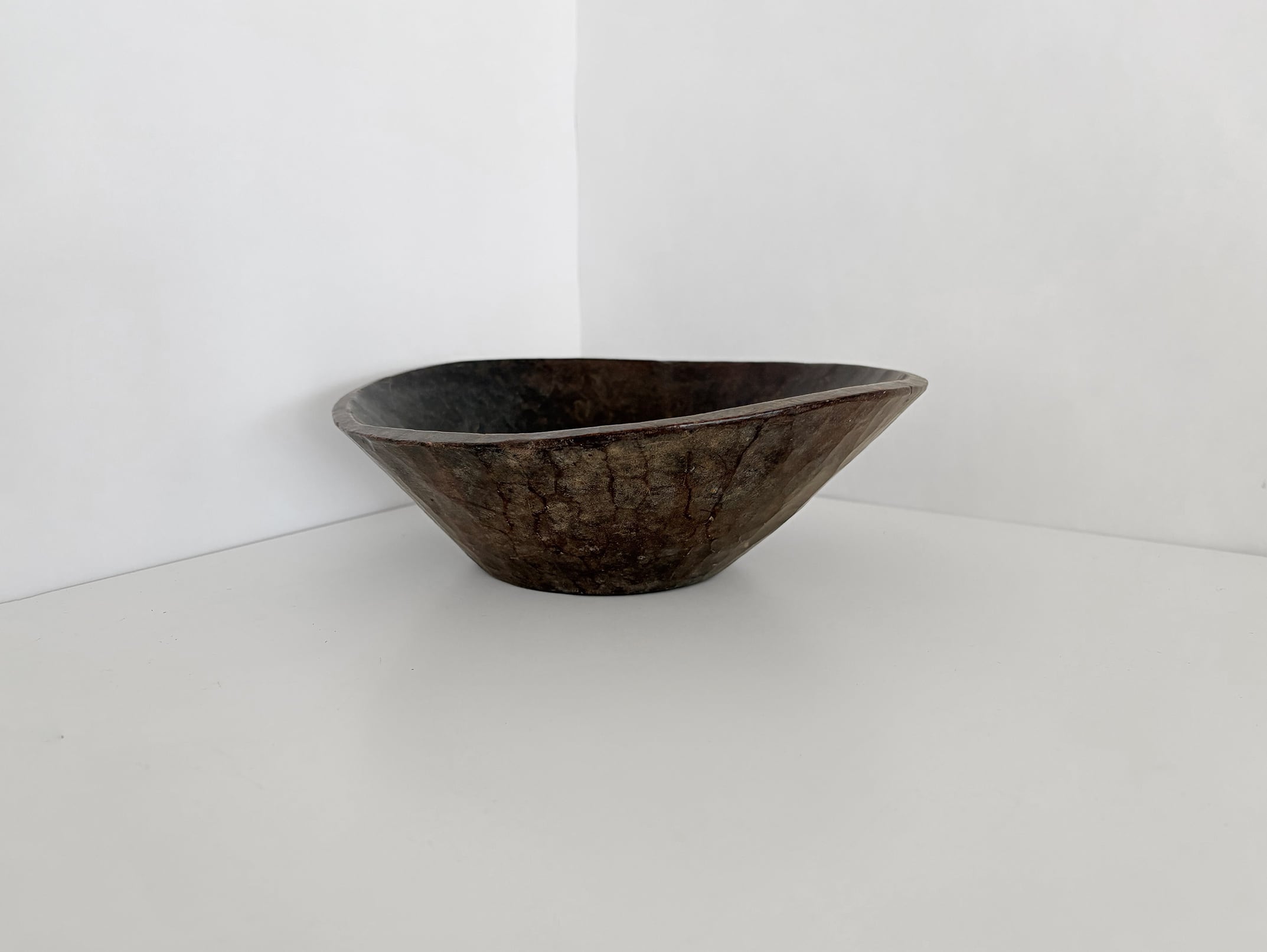 The patina visible on the interior and exterior surfaces is the result of long-term use, not artificial aging. Variations in tone, texture, and shape arise from the individuality of the wood and the hand-carving process, making each piece truly one of a kind.