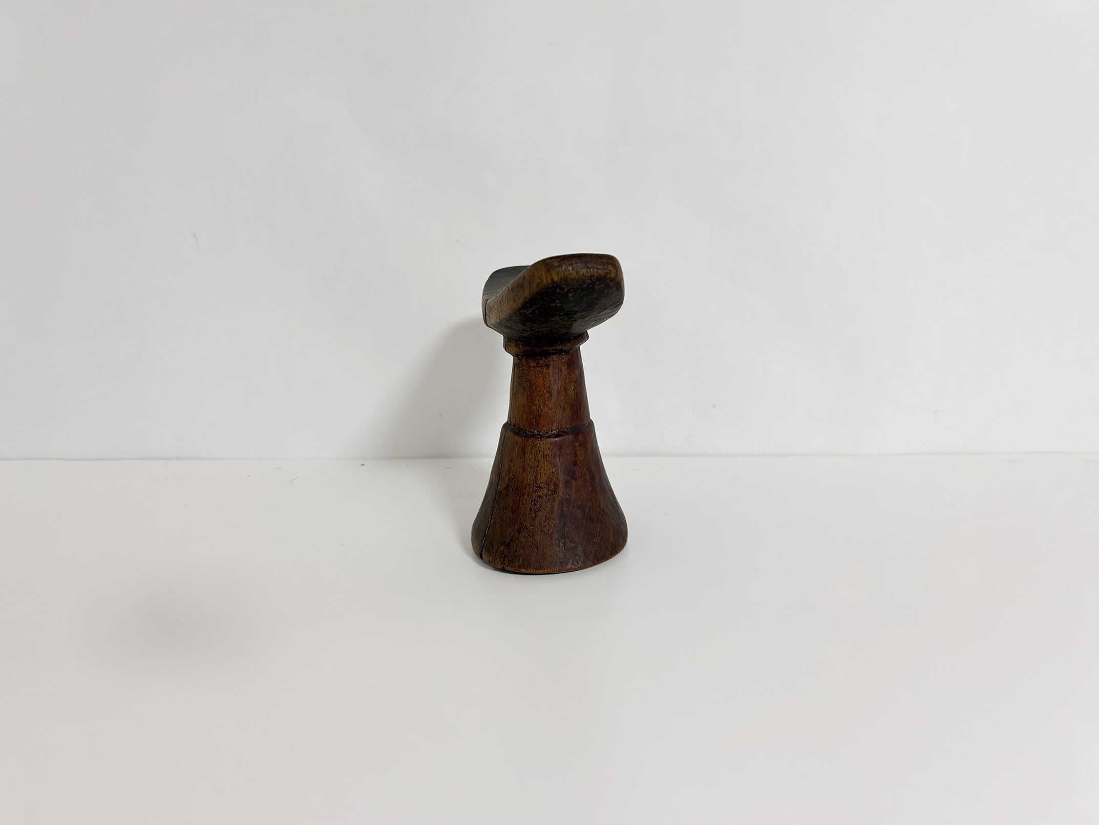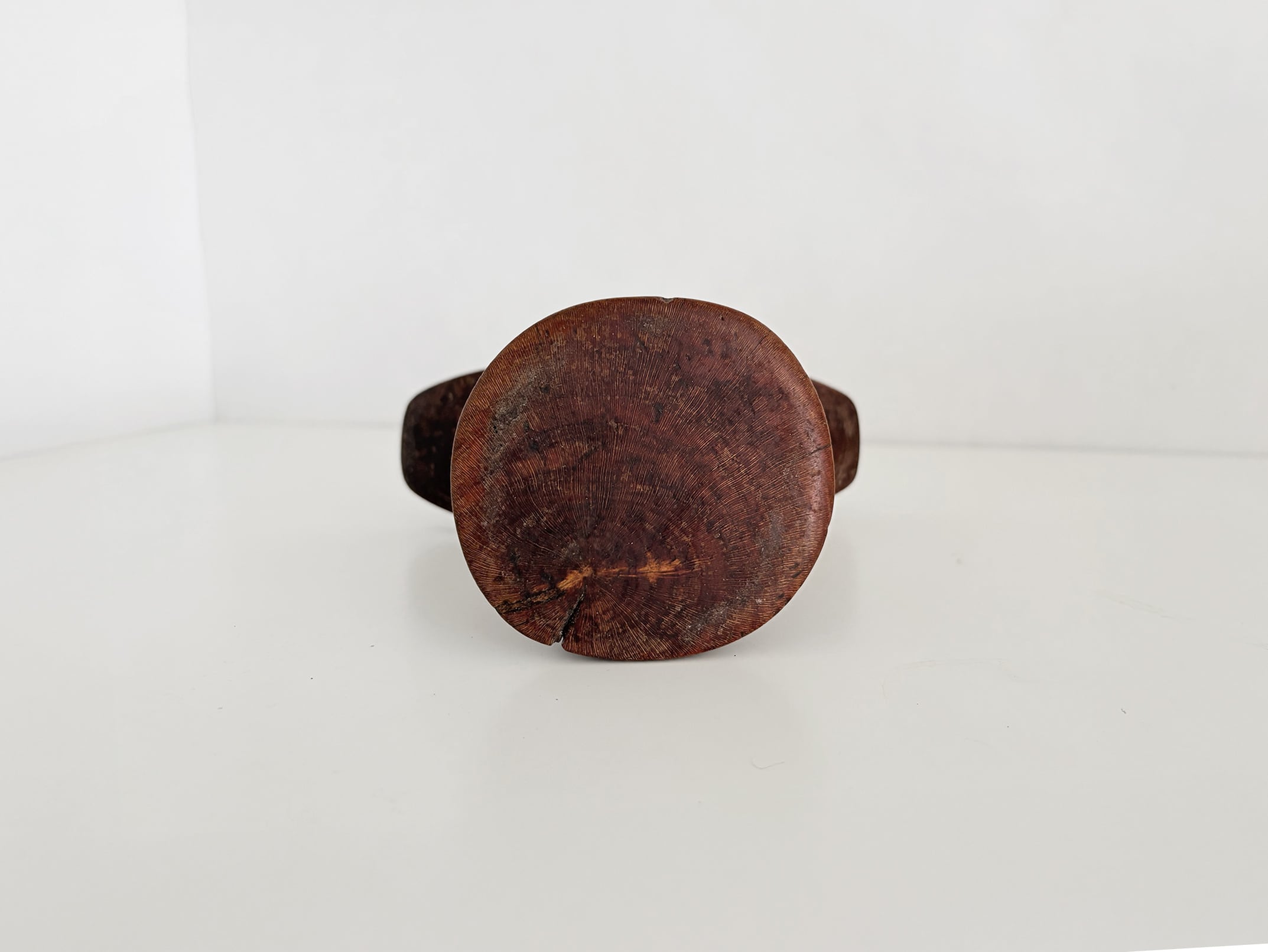 A dense, locally available hardwood was used for this piece. While the exact wood species cannot be identified, the material shows durability and a tactile depth developed over time. The darker patina and smooth surface on the upper section are likely the result of long-term use, contact with hair and skin, and natural aging rather than applied finishes.