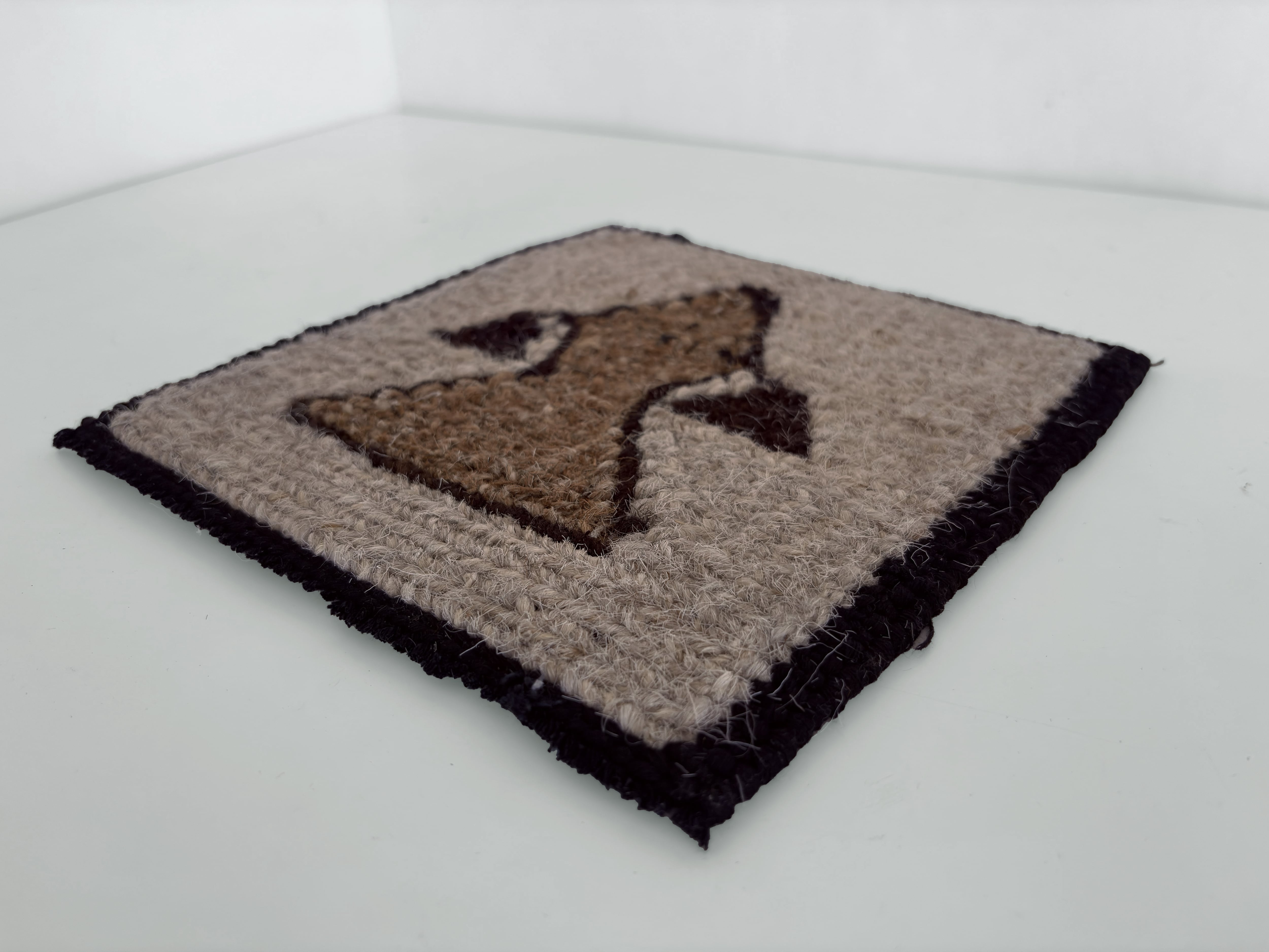 短い毛足と密な織りによって構成され、文様は縫い付けではなく、織りの工程の中で丁寧に織り込まれています。