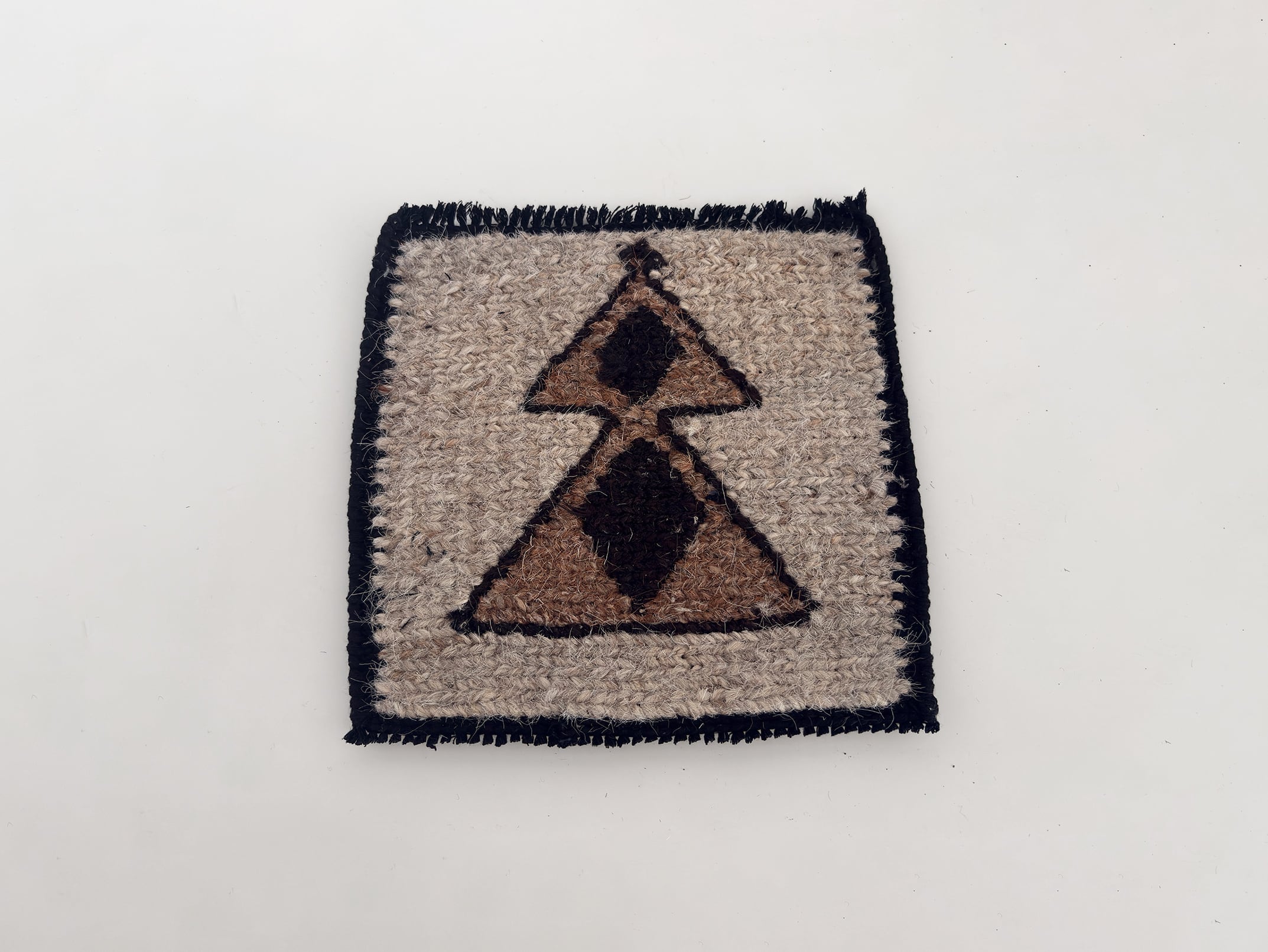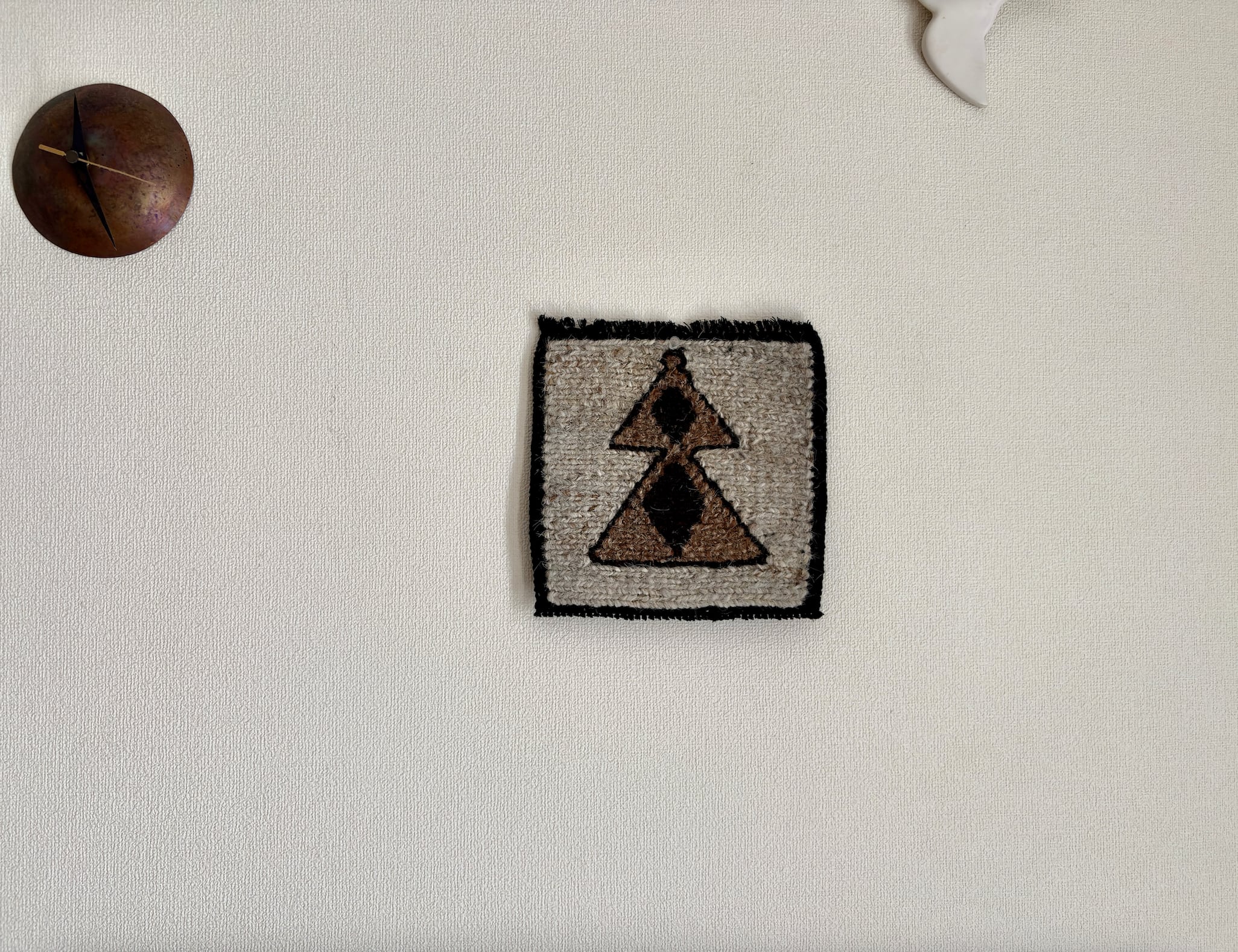 エチオピアで織られたこのラグは、生成りのウールをベースにブラウンとブラックで構成されたミニマルな配色が特徴です。手紡ぎに近い糸の不均一さと、やや粗めの織りが生む立体感により、視覚だけでなく触感でも素材の豊かさを感じられます。縁取りのブラックは全体を引き締め、中央のモチーフを際立たせる役割を持っています。