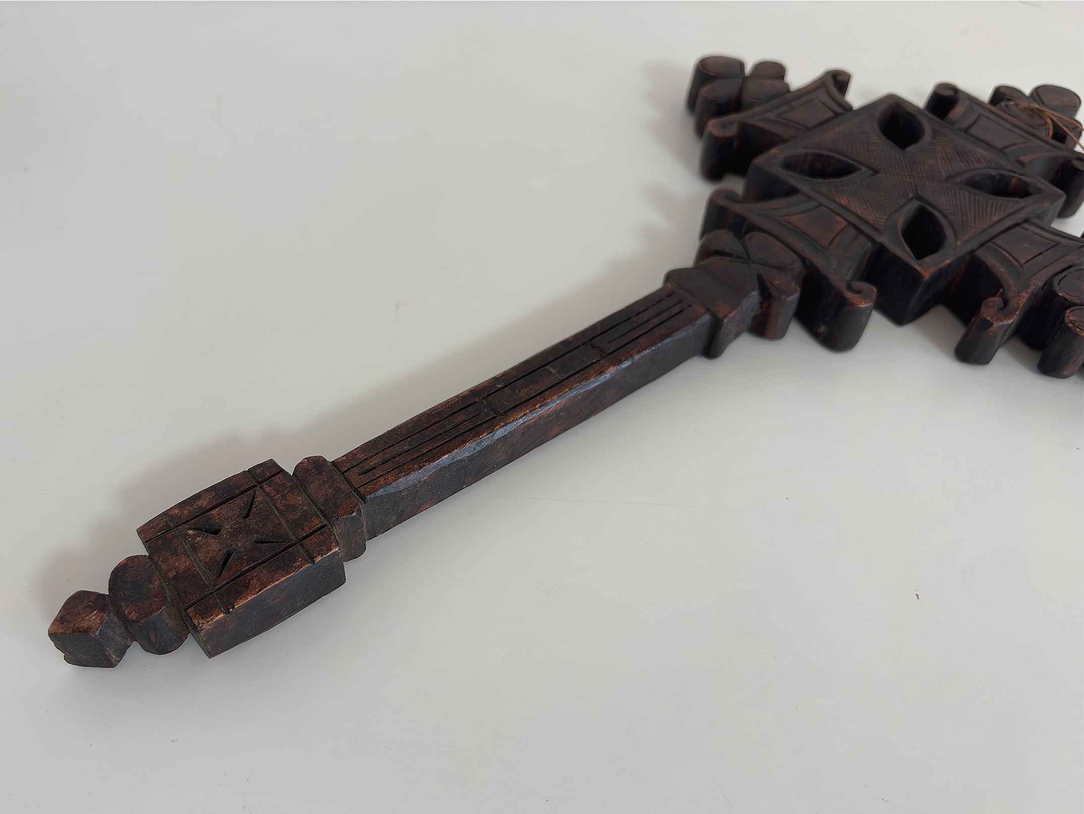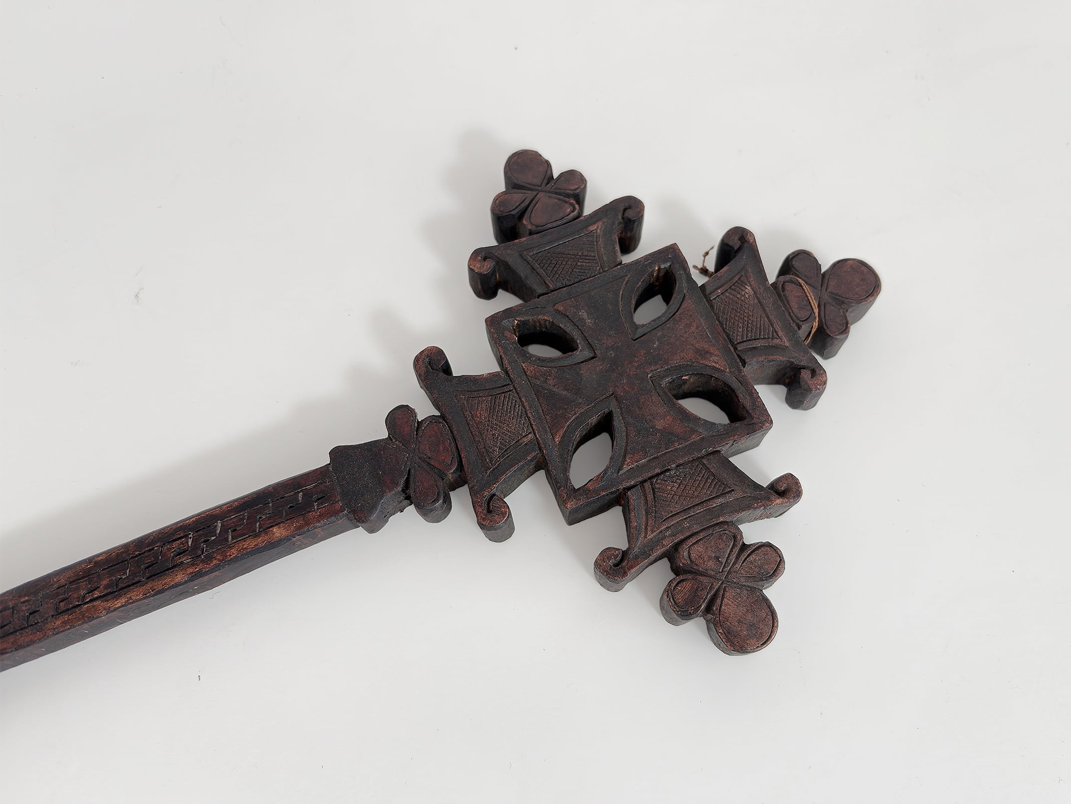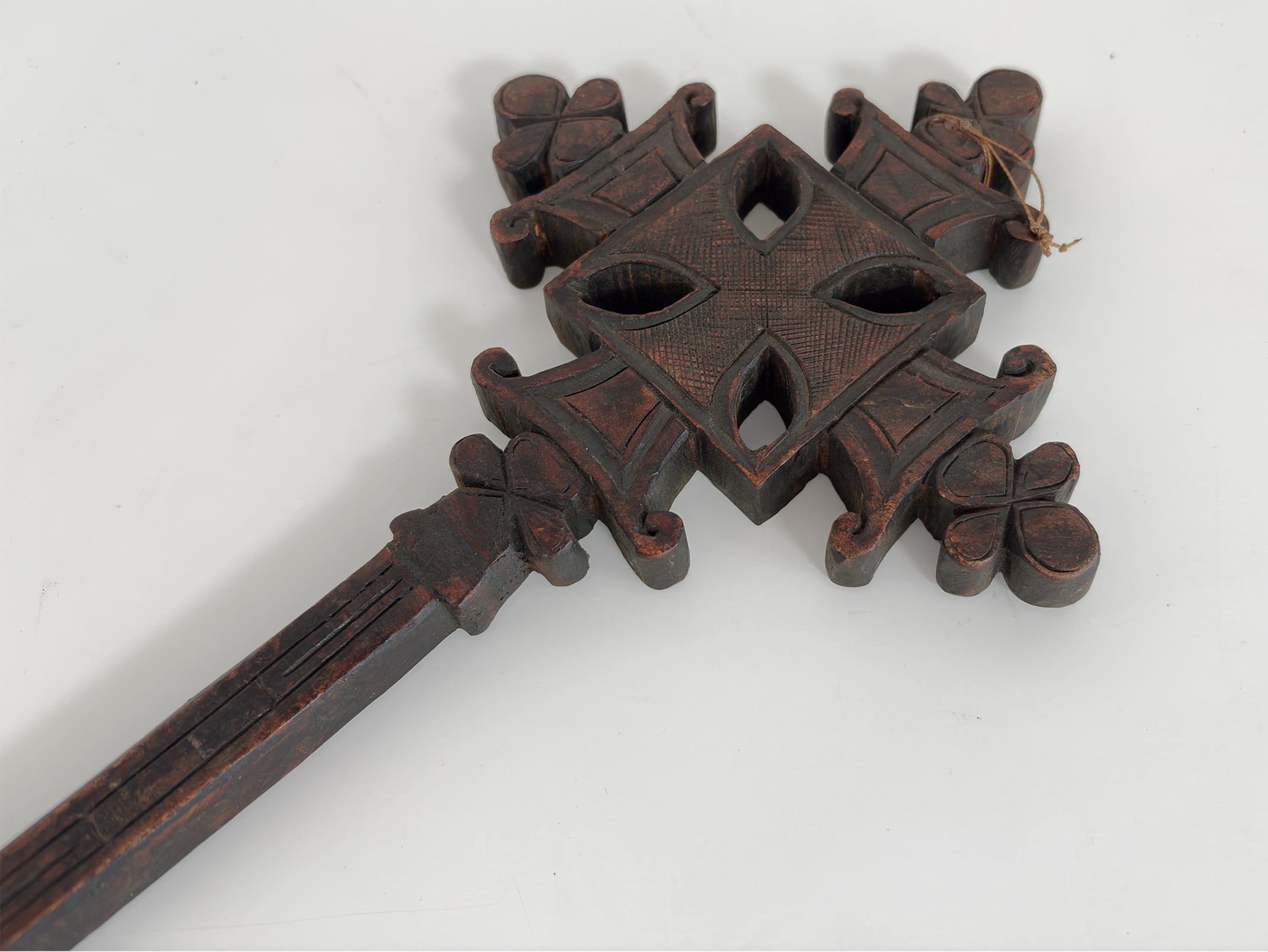 エチオピアで制作されたヴィンテージの木製ハンドクロスです。