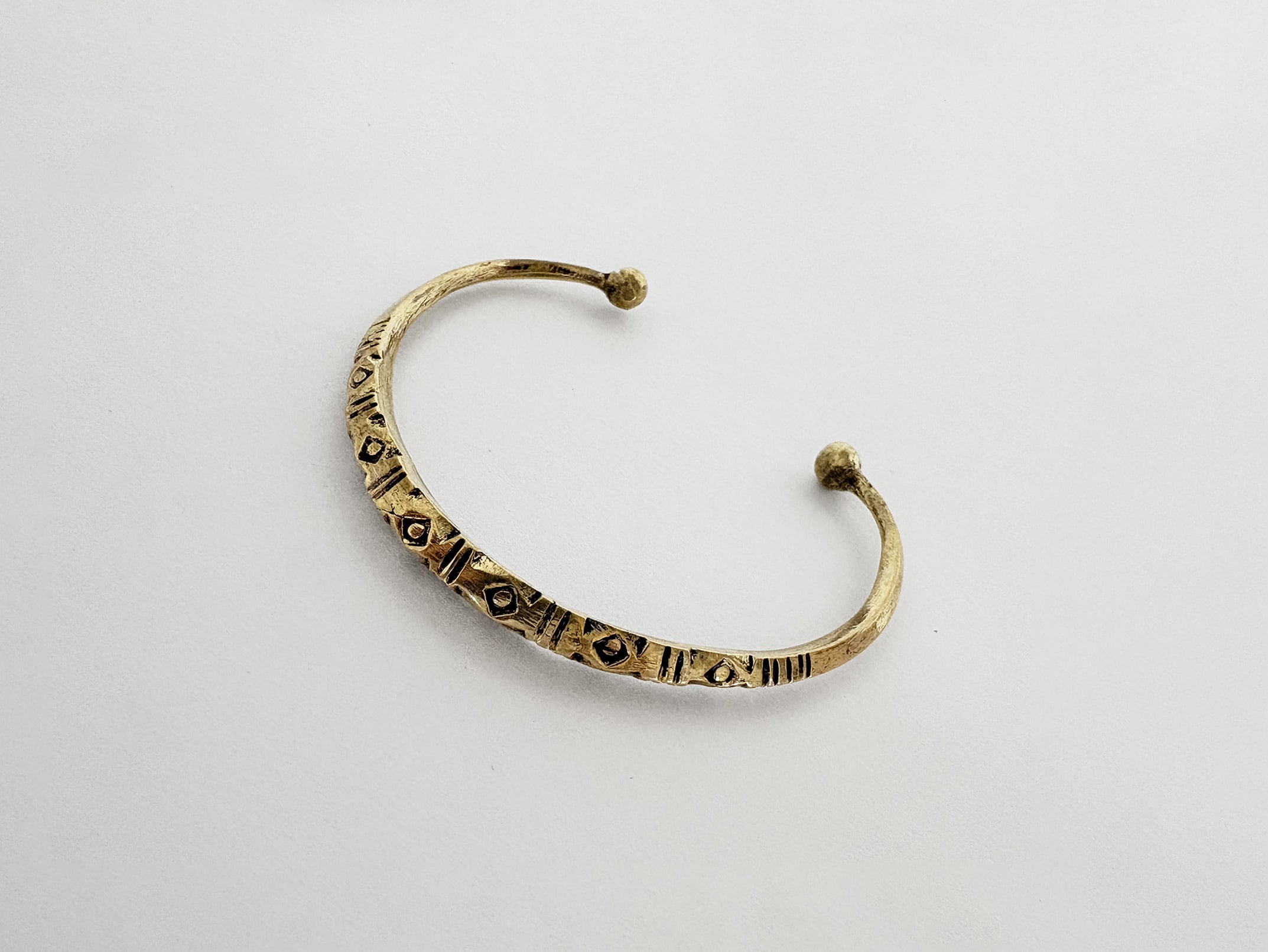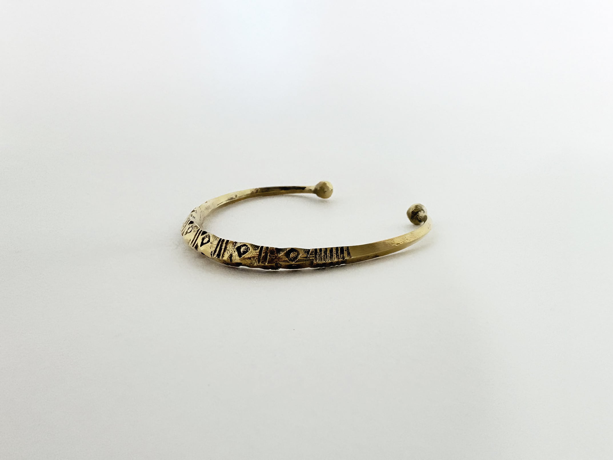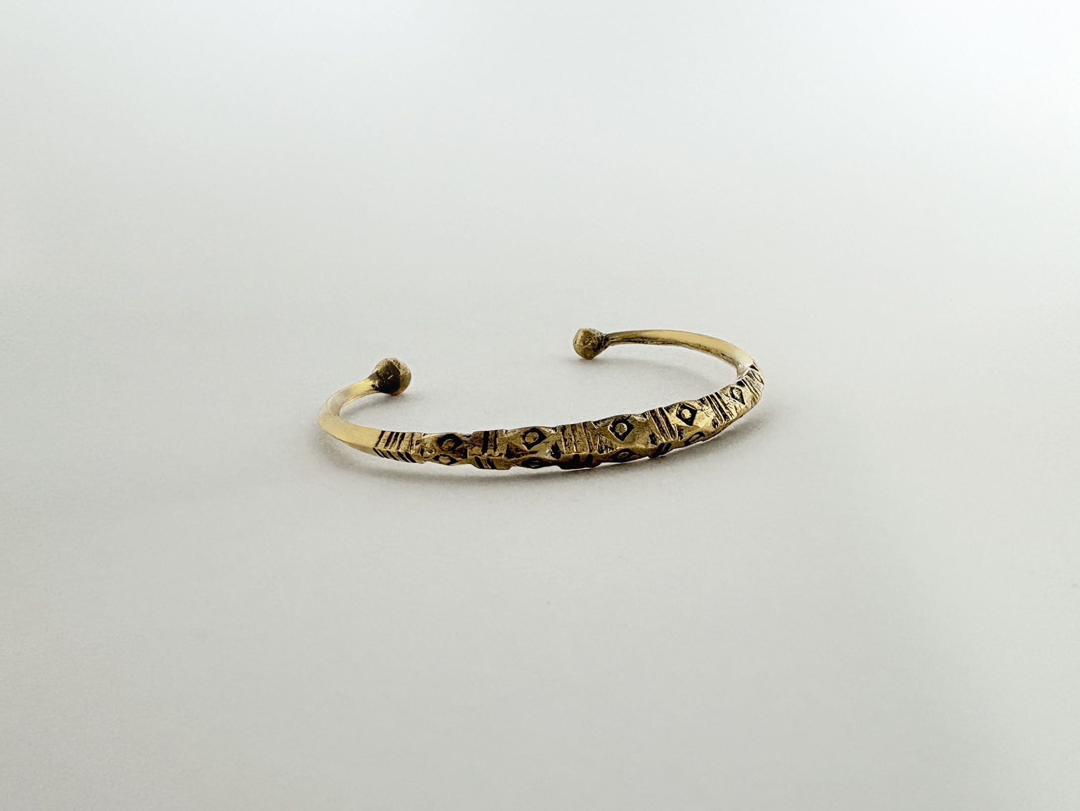 サハラ砂漠一帯に暮らすトゥアレグ族の装身文化を背景に制作された、ブロンズ製のバングルです。