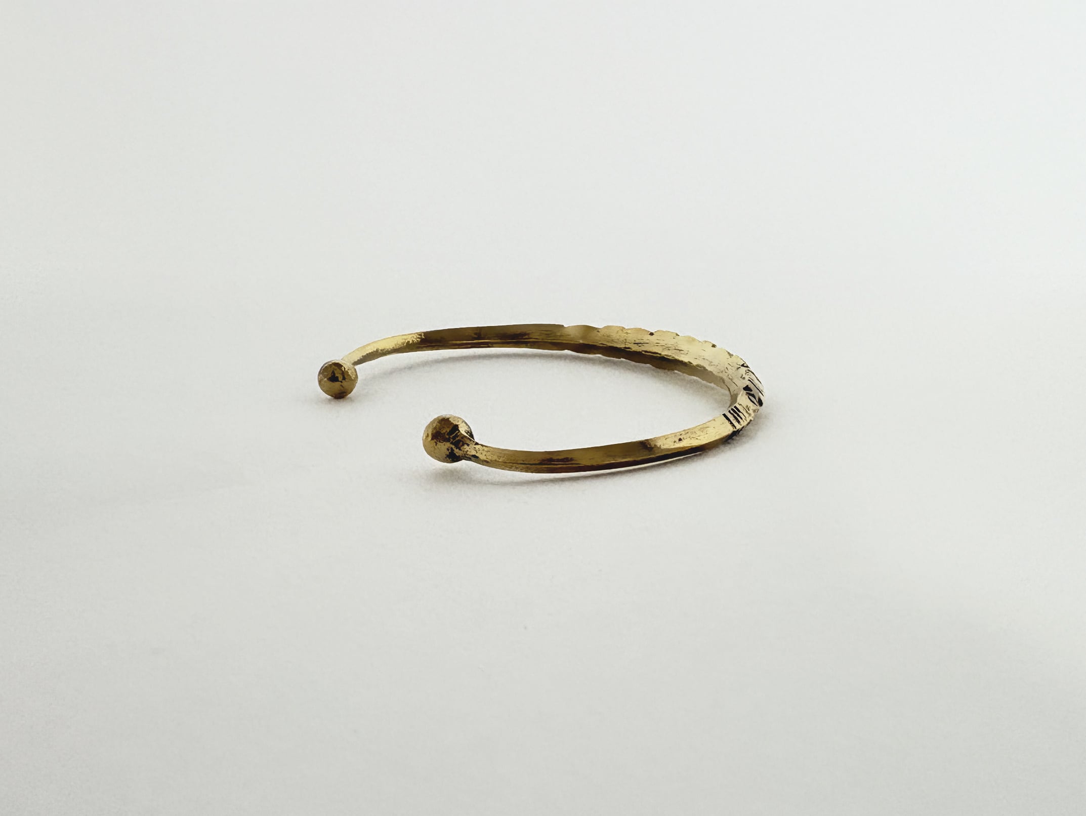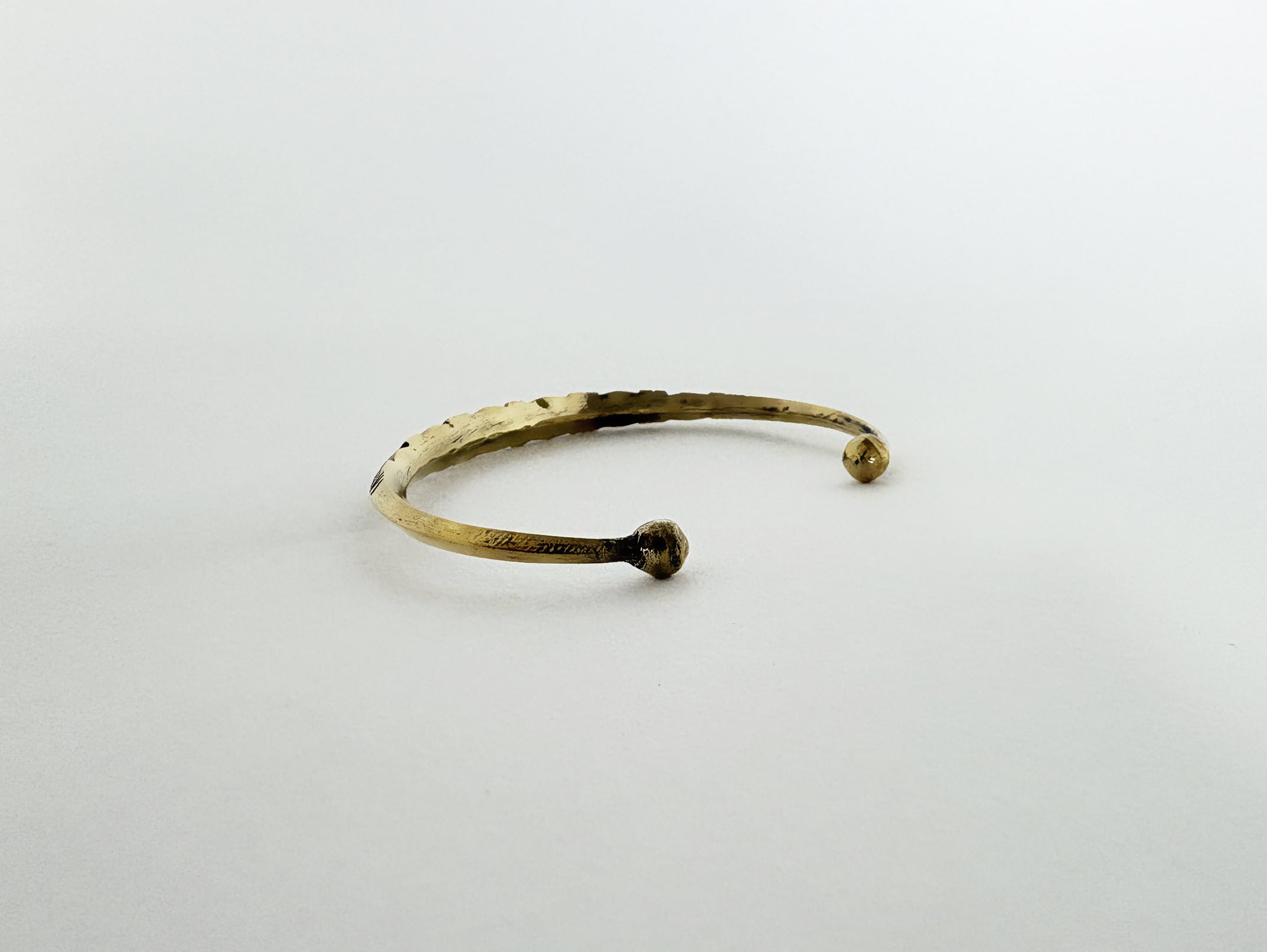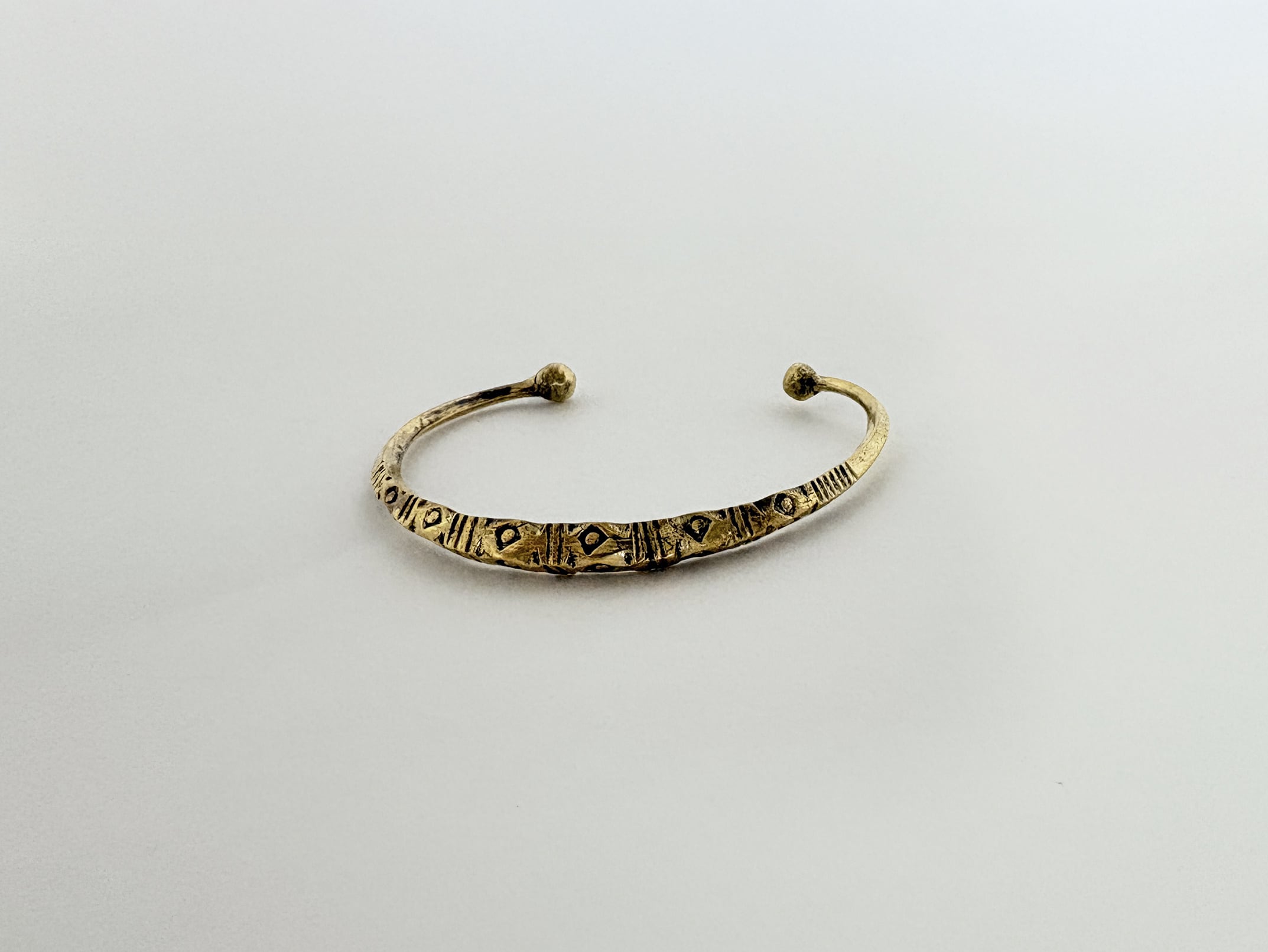 サハラ砂漠一帯に暮らすトゥアレグ族の装身文化を背景に制作された、ブロンズ製のバングルです。
