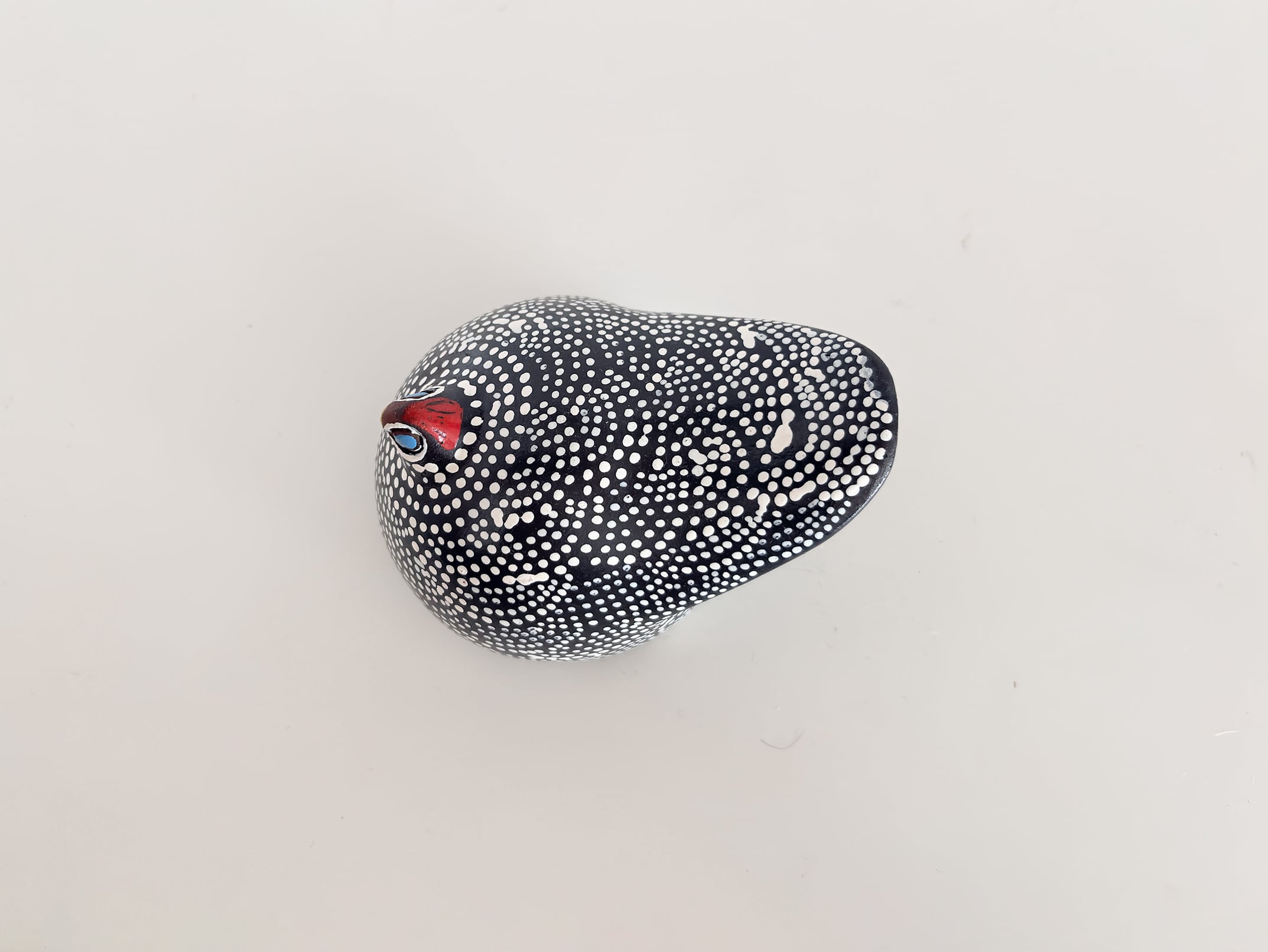 エチオピアで作られた、陶器製のほろほろ鳥の置物です。