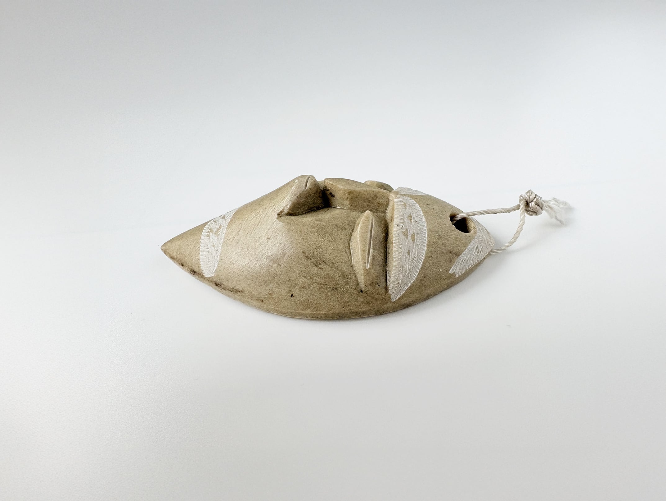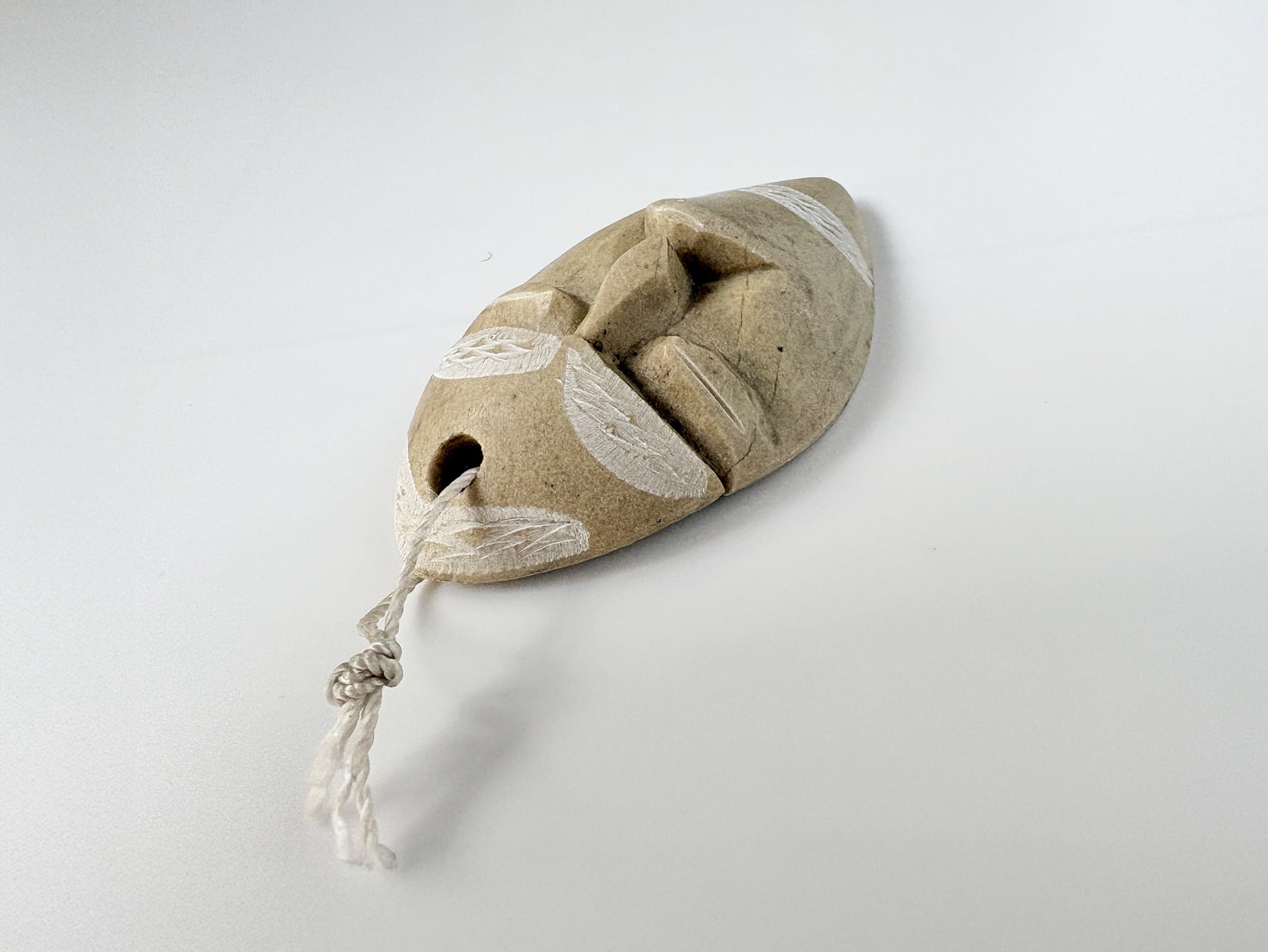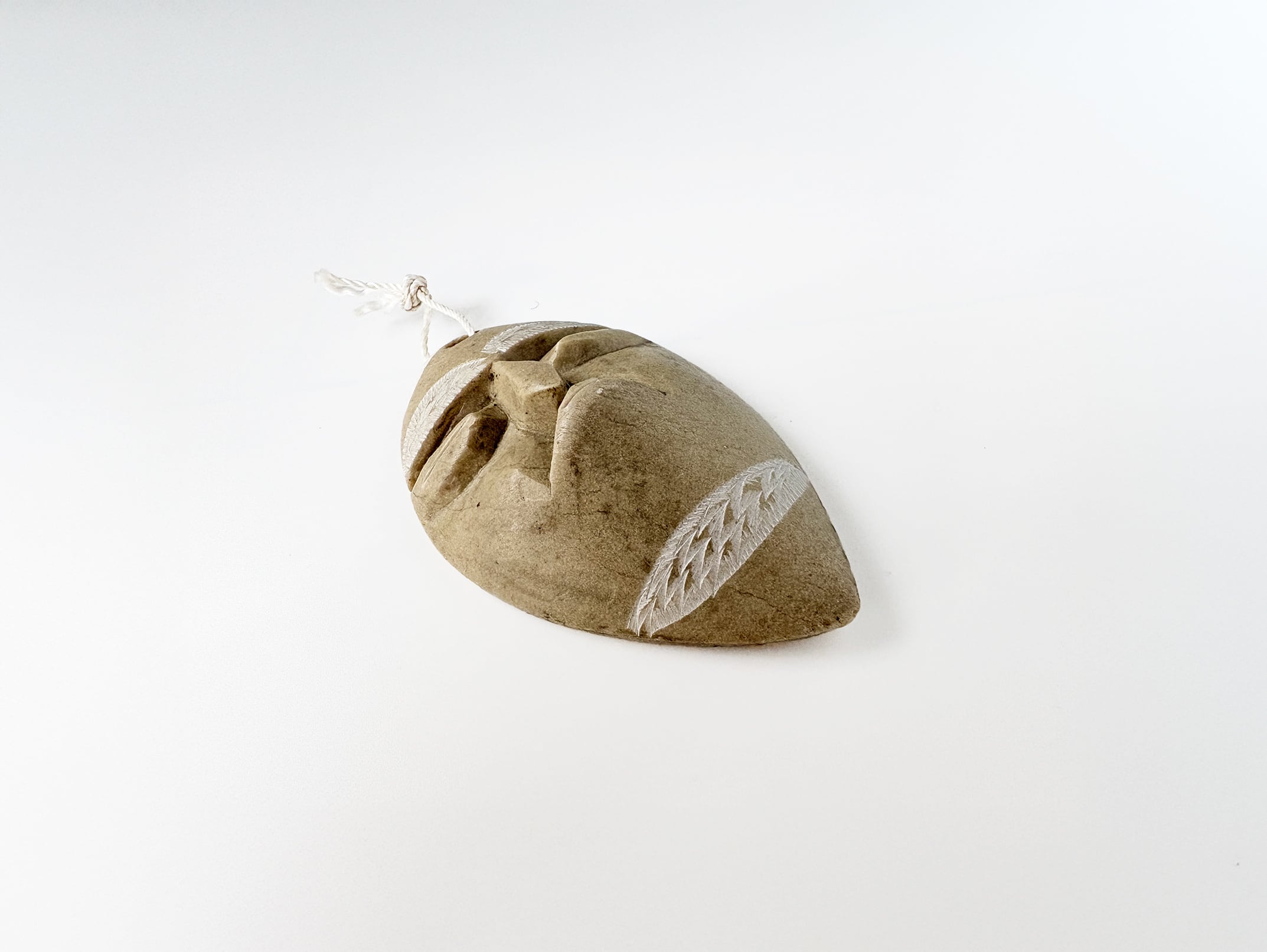 ソープストーンは加工しやすい石材ですが、鼻梁の稜線や文様の均整を保ちながら彫り進めるには一定の技術が必要です。