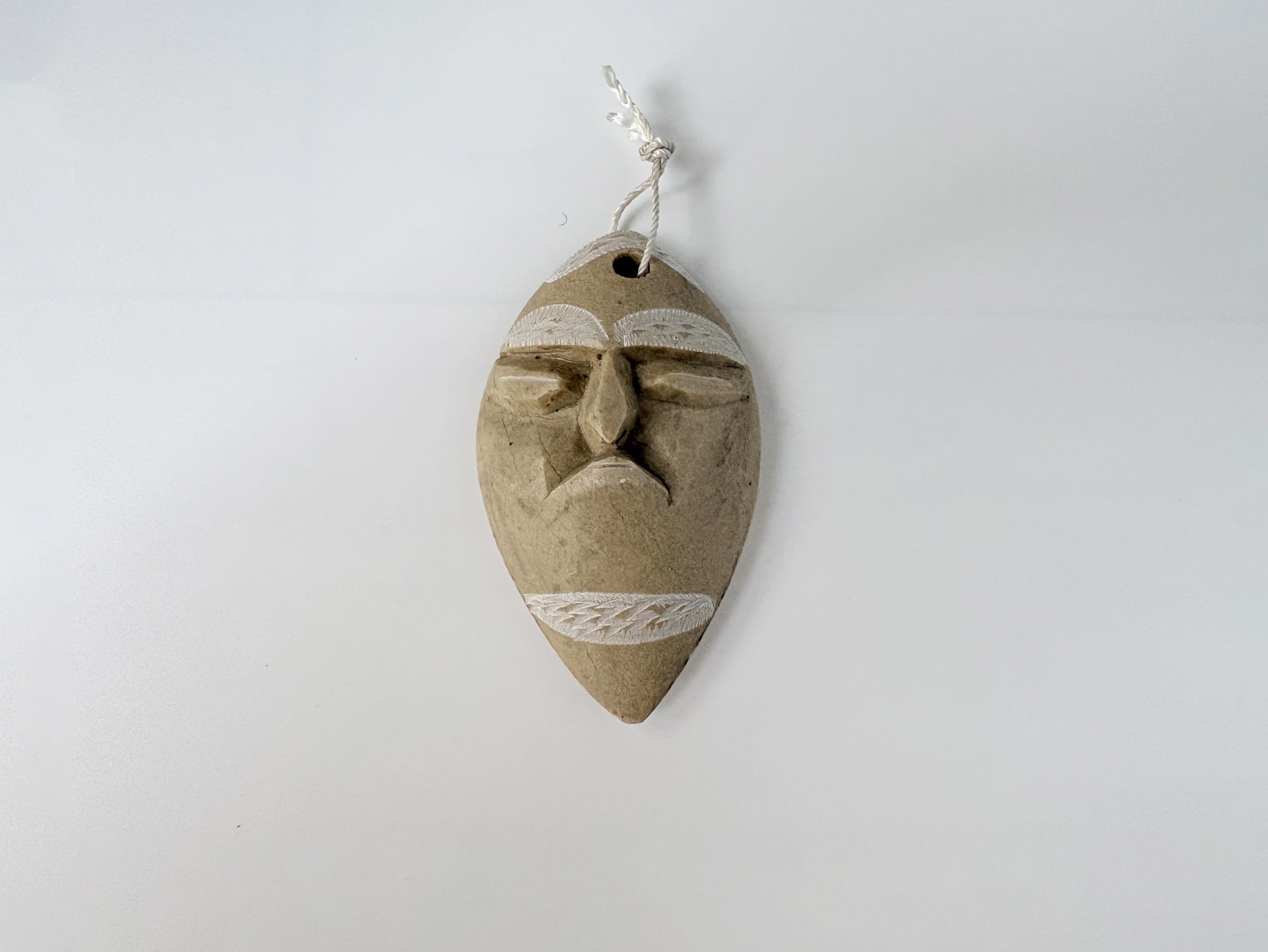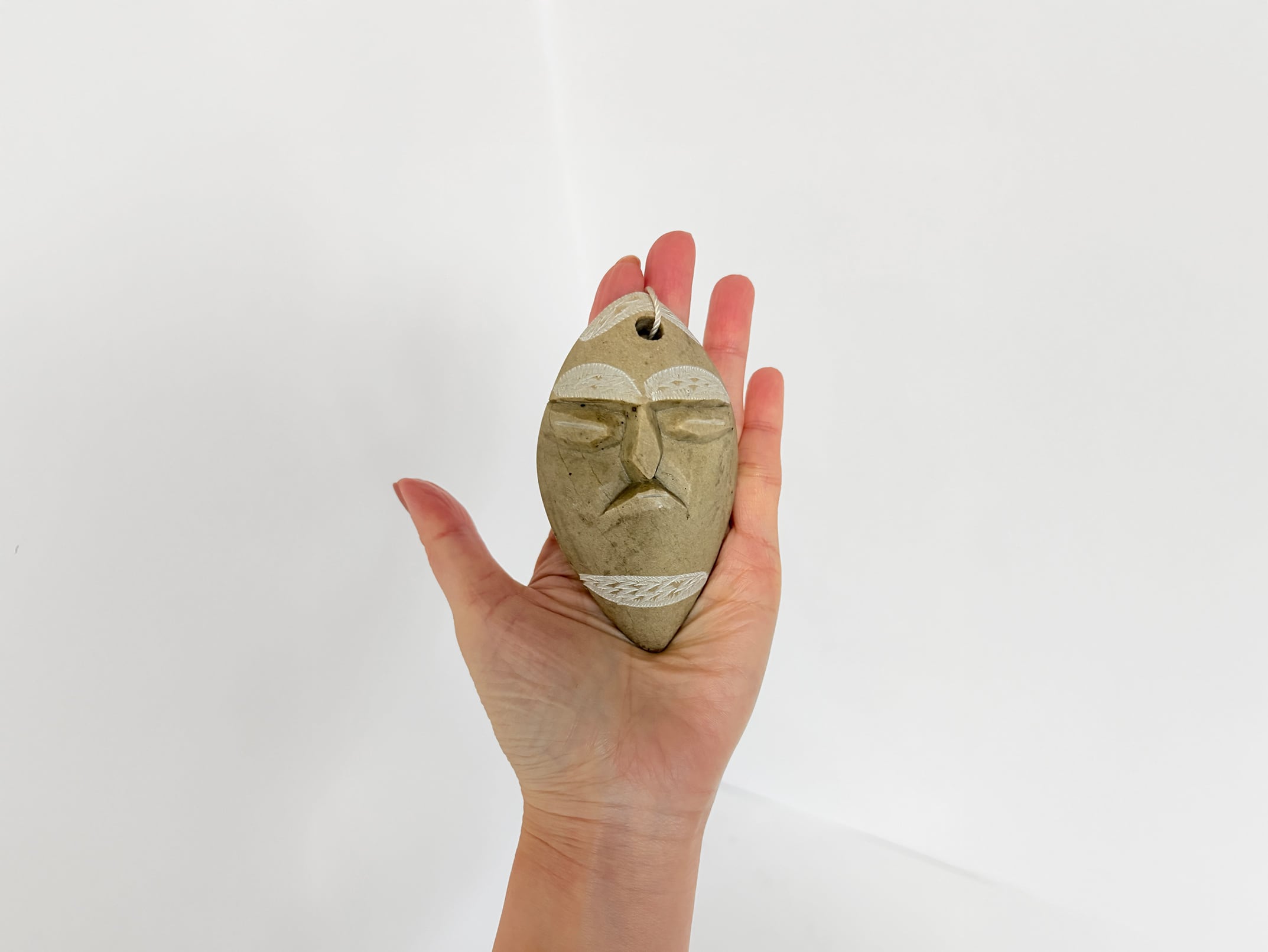 モロッコ ホワイトソープストーン 顔のオブジェ|吊るし仕様