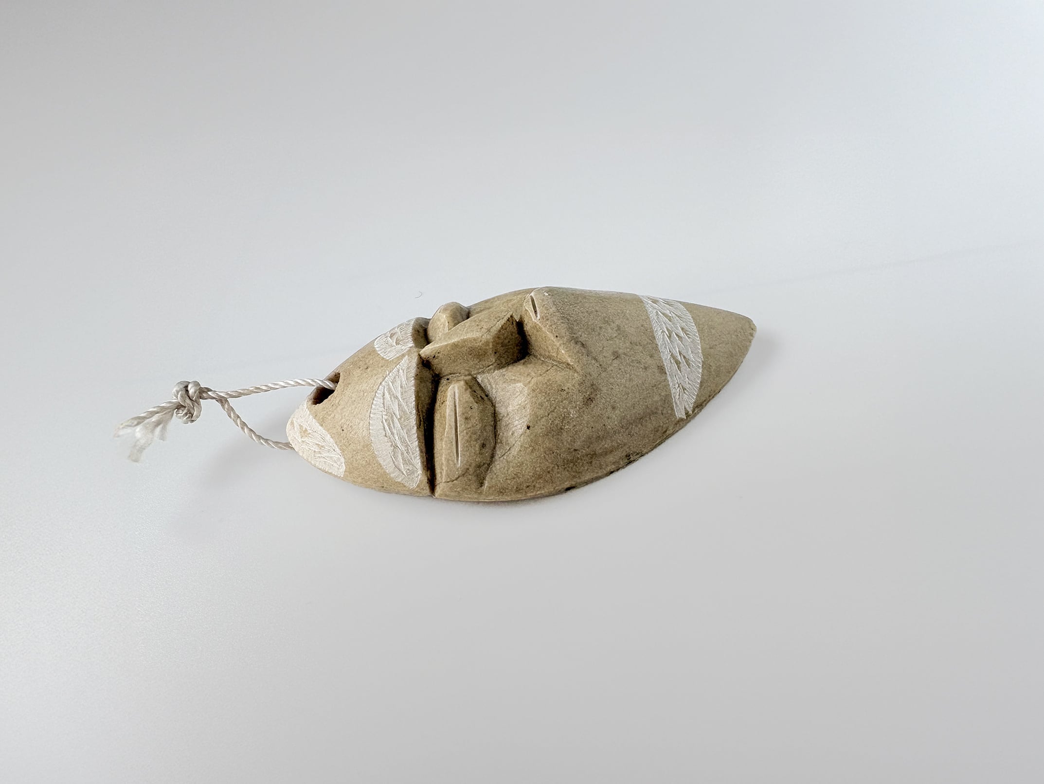 モロッコで採掘された白系ソープストーン(ステアタイト)から削り出された、吊るして飾る顔のオブジェです。