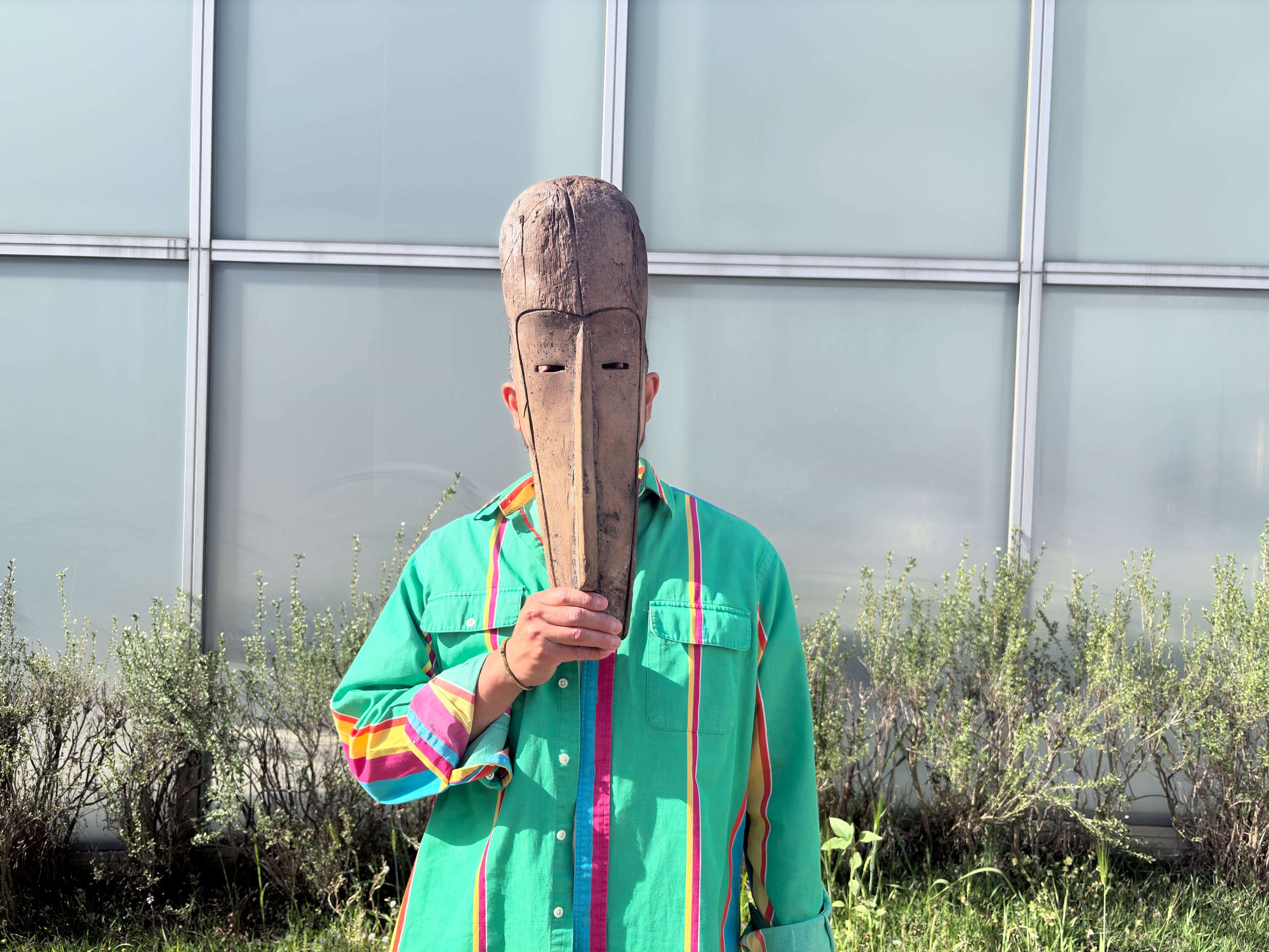 This mask is not designed for wall hanging. It can be displayed upright as a sculptural object, placed on a shelf, console table or cabinet. When displayed vertically it creates a striking line within the space and functions almost like a small sculpture. Its natural wood surface pairs well with modern interiors, minimalist spaces and contemporary furniture while still bringing the character of African decor.