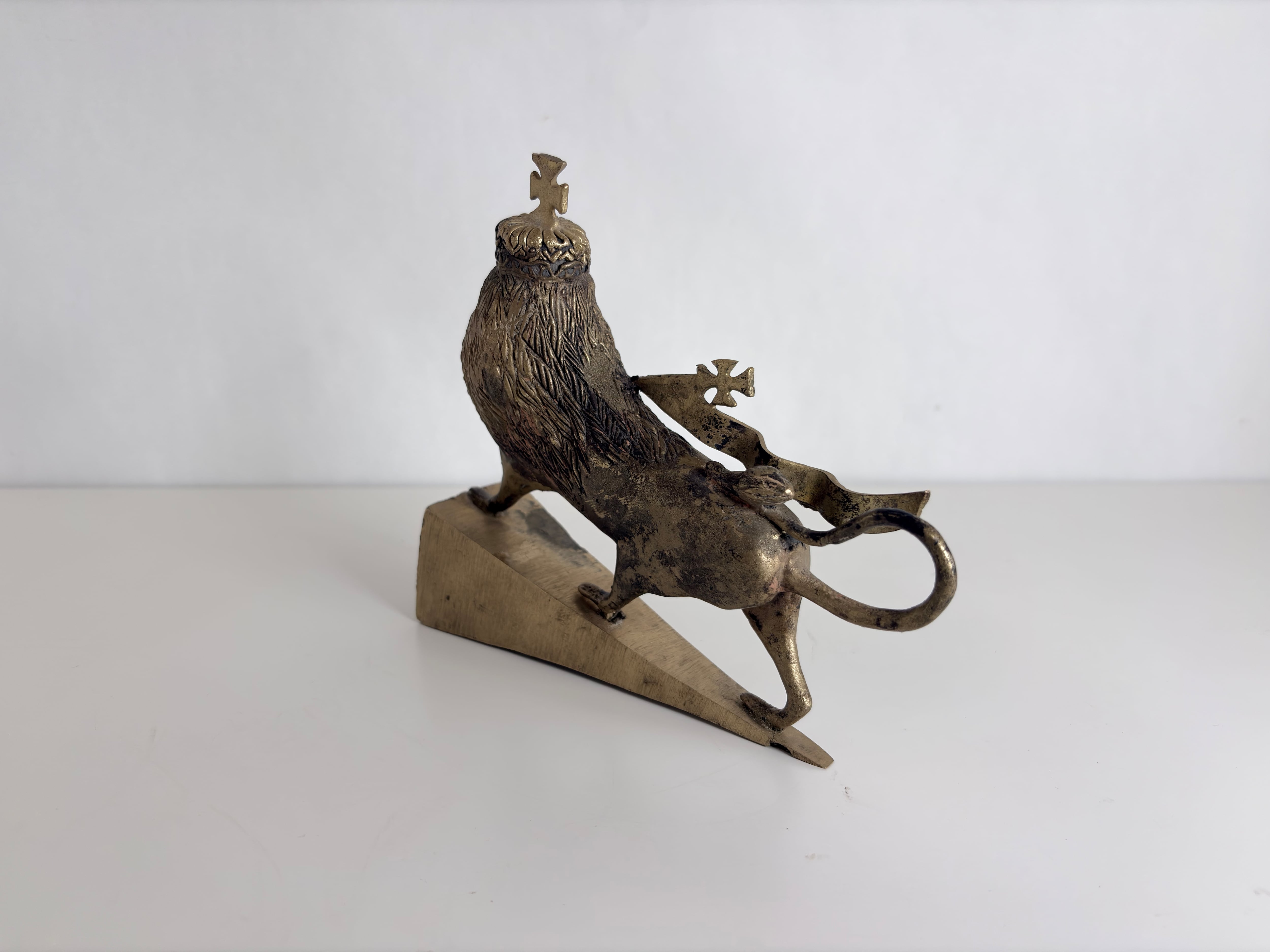 The crown and cross motif reflects the influence of Ethiopian Christian culture. The Lion of Judah has long been associated with royalty pride and identity. While the motif is still produced today pieces with this level of aging and texture are becoming less common.